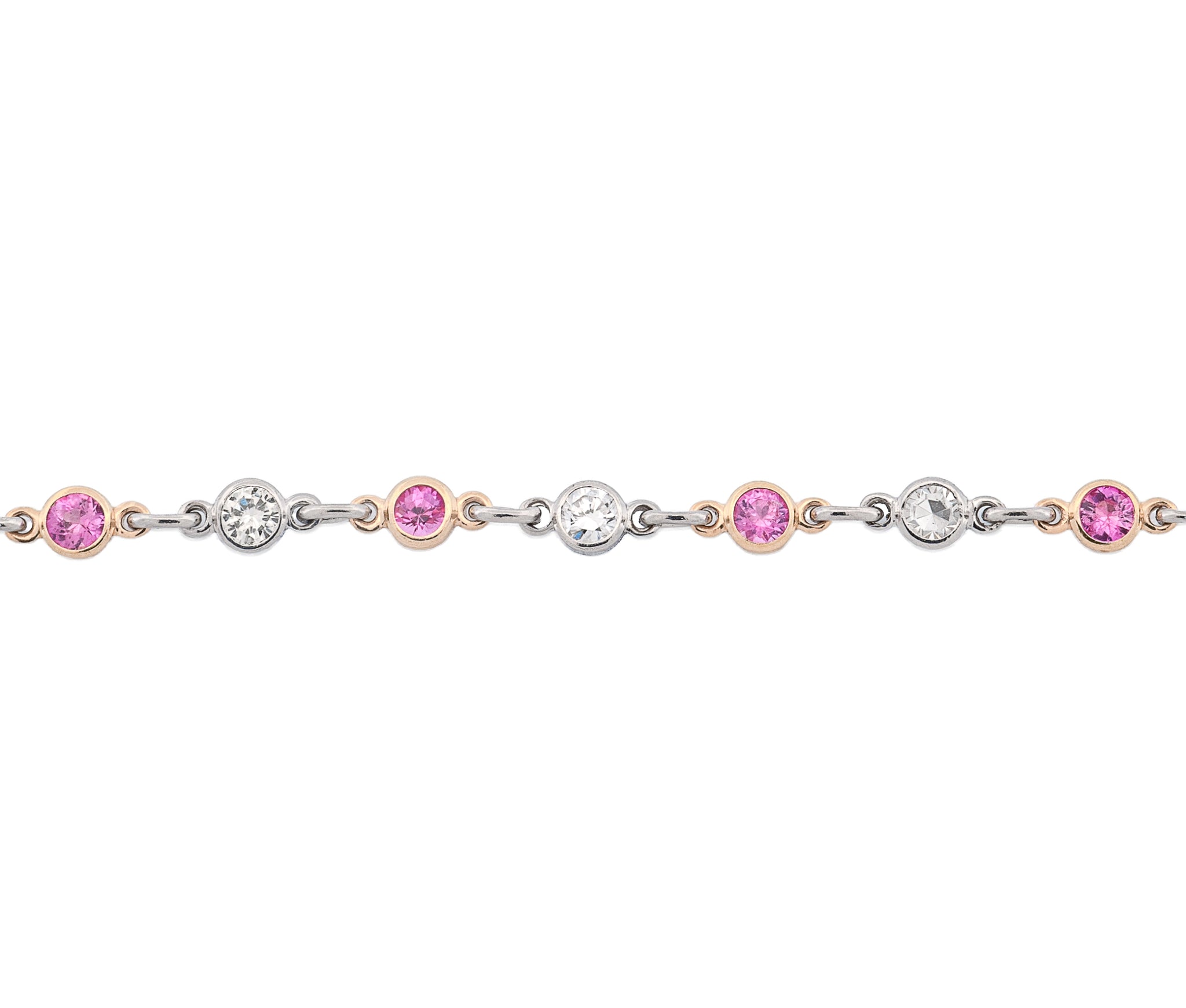 10K Two-Tone 1.40 CTW Diamond and Pink Sapphire Diamonds By The Yard Necklace
