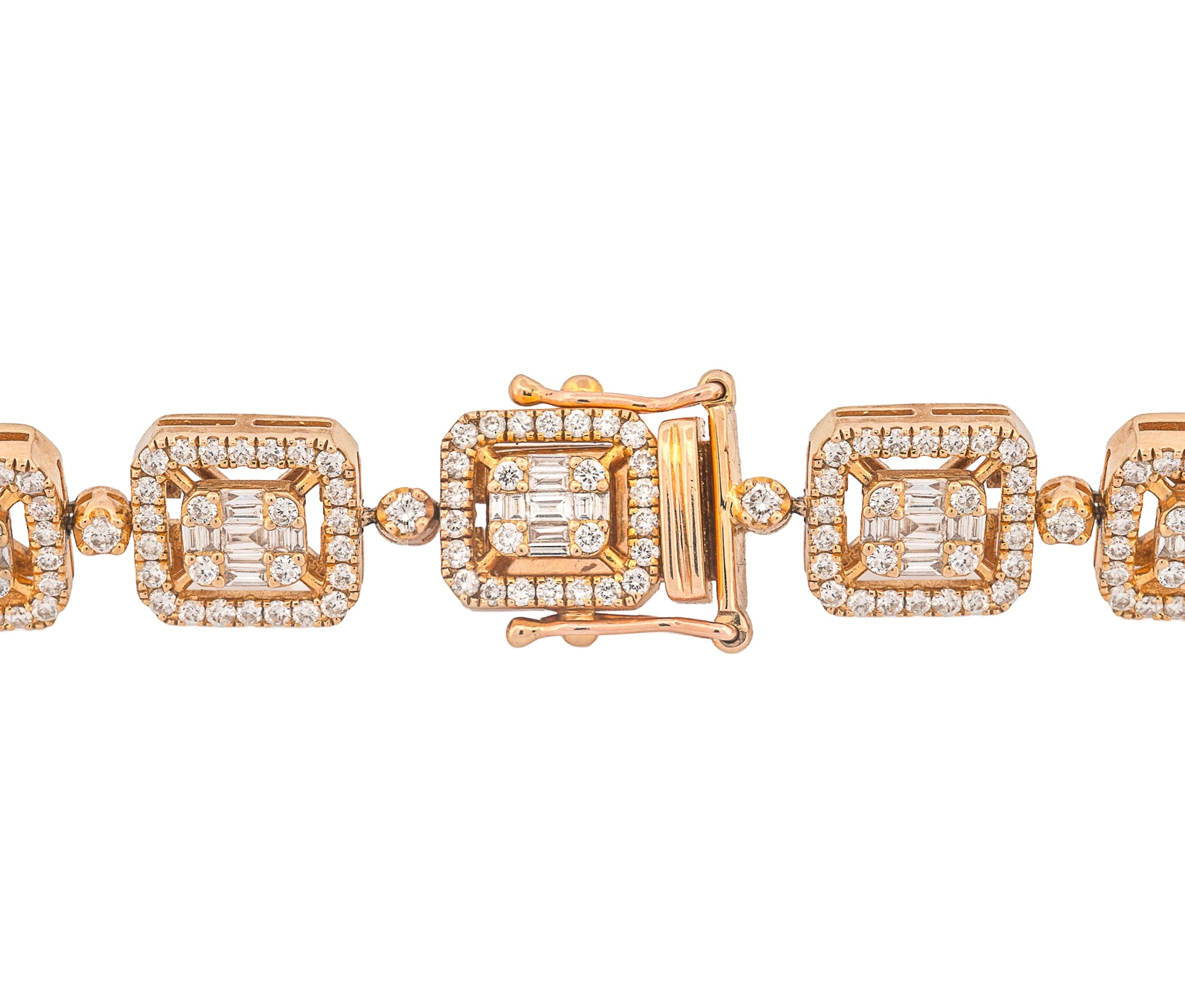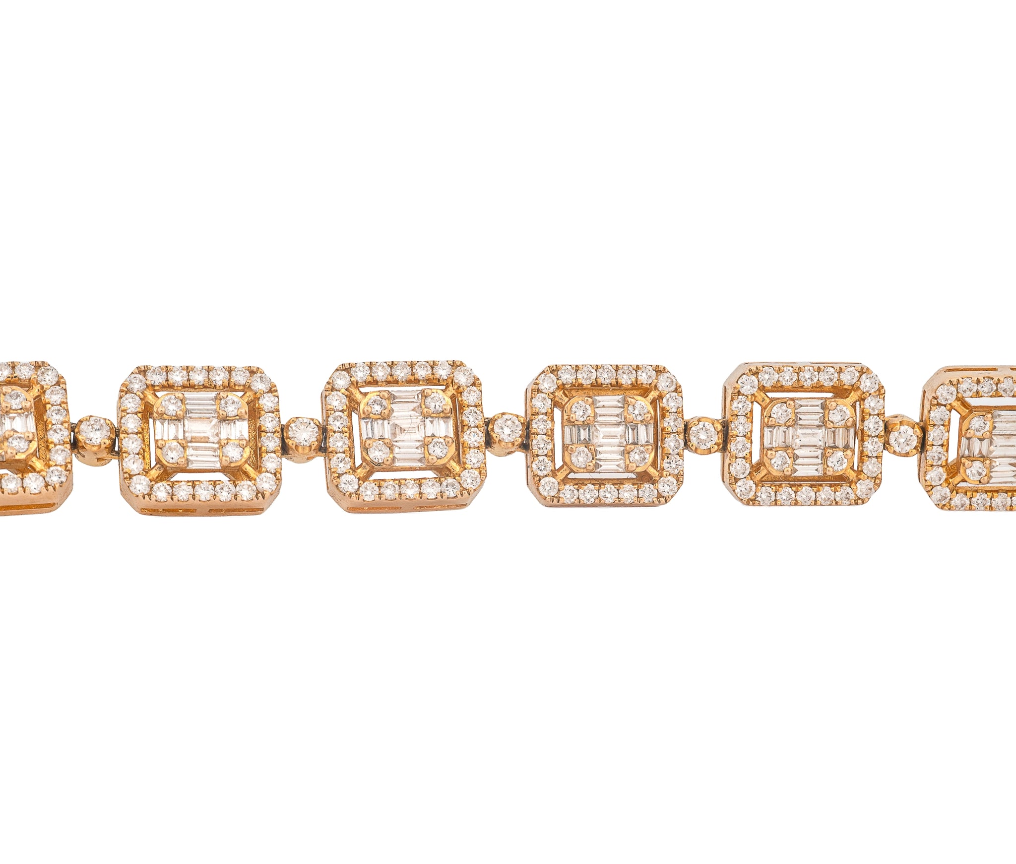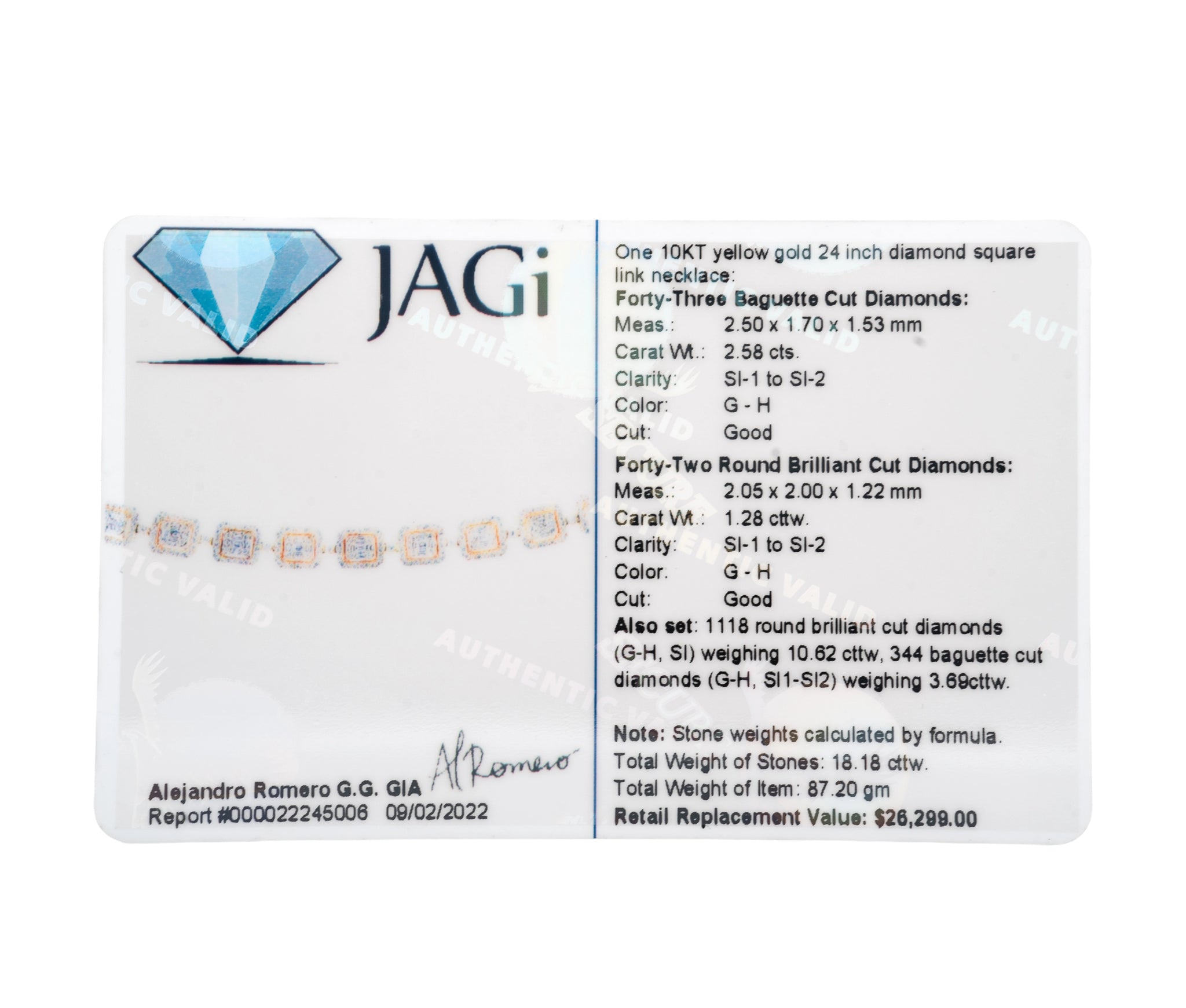 10K Yellow Gold 24 in Diamond Square Link Necklace
