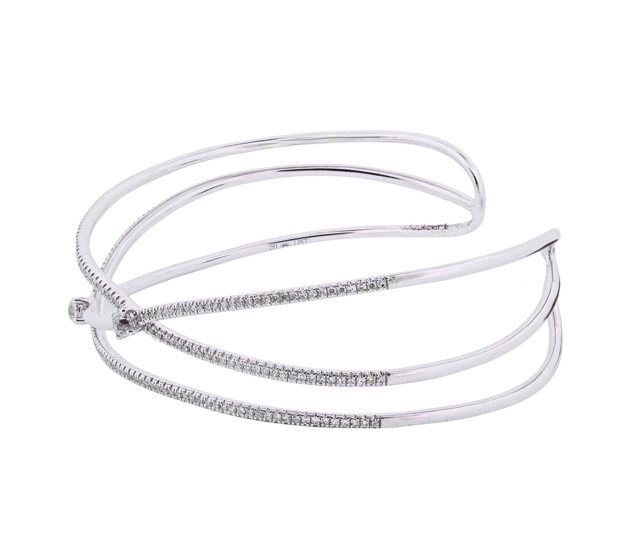 This Women's 14k 1.04 DIA Bangle Bracelet is an elegant piece of jewelry designed to add a touch of sophistication to any outfit. Crafted from high-quality 14k gold, it features a sleek and smooth design that ensures comfort and versatility. The bracelet is adorned with 1.04 carats of sparkling diamonds, which are strategically placed to create a dazzling effect. The bangle's design typically allows it to slip on easily and sit snugly on the wrist, making it ideal for both casual and formal occasions.