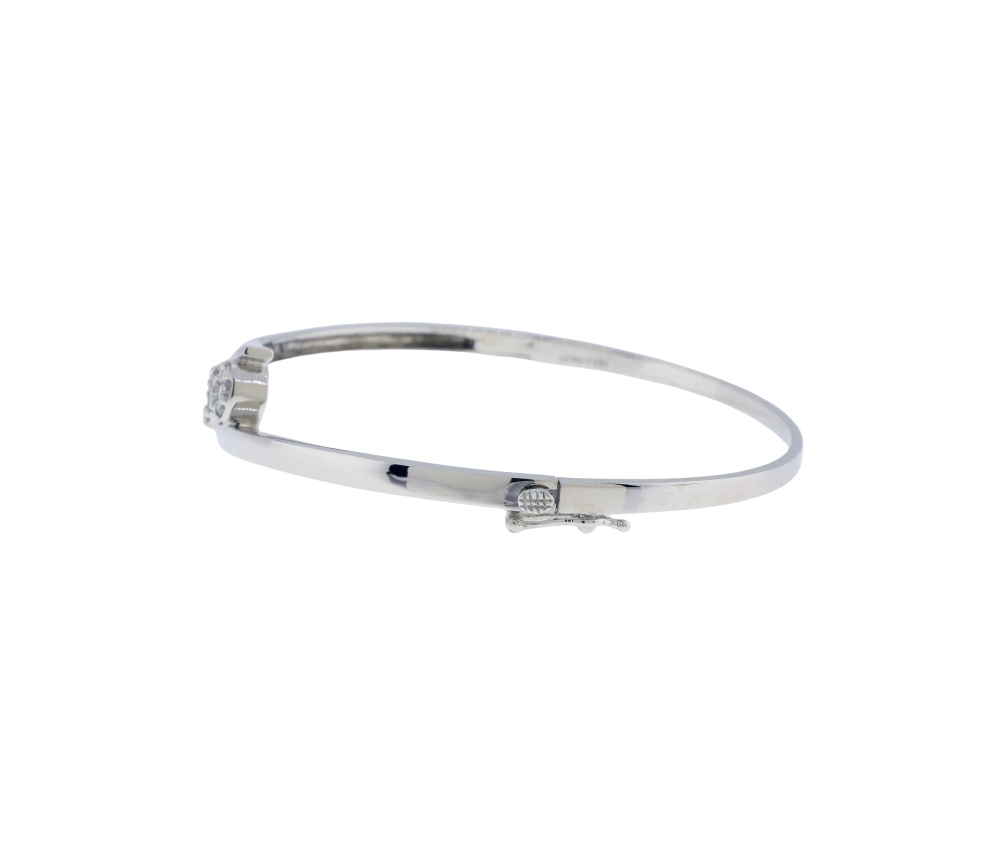 14K White Gold 0.70Ct Diamond Flower Design Bypass Hinge Bangle Bracelet