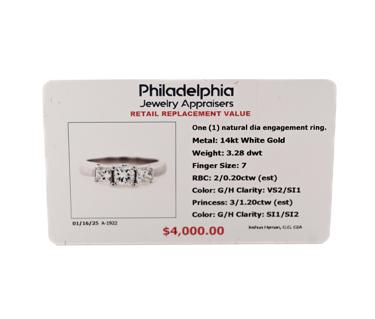 14K White Gold 1.45Ct Square Modified Brilliant Diamond Ring