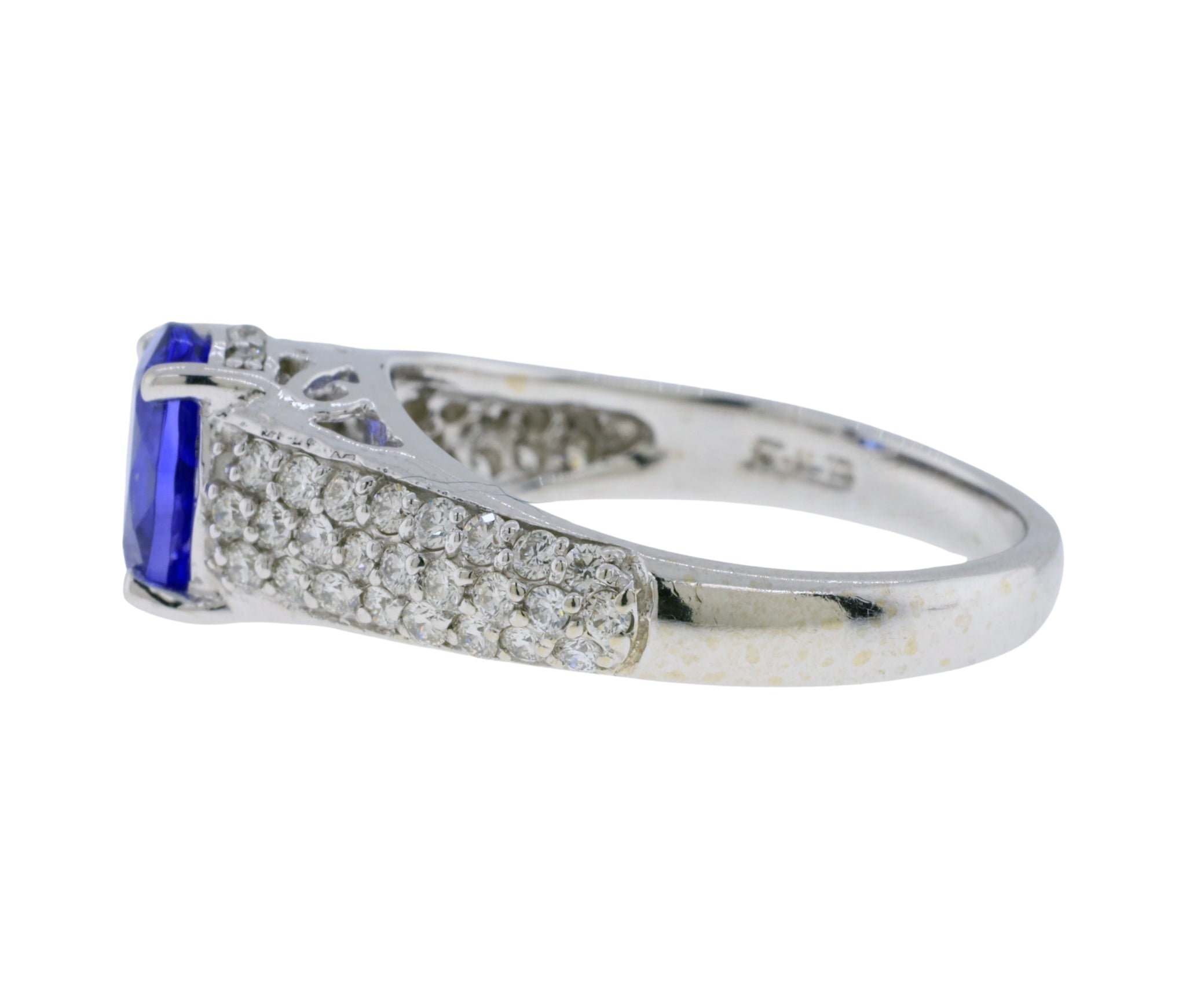 14K White Gold 1.48ct Tanzanite & Diamond Pave Cathedral Style Ring