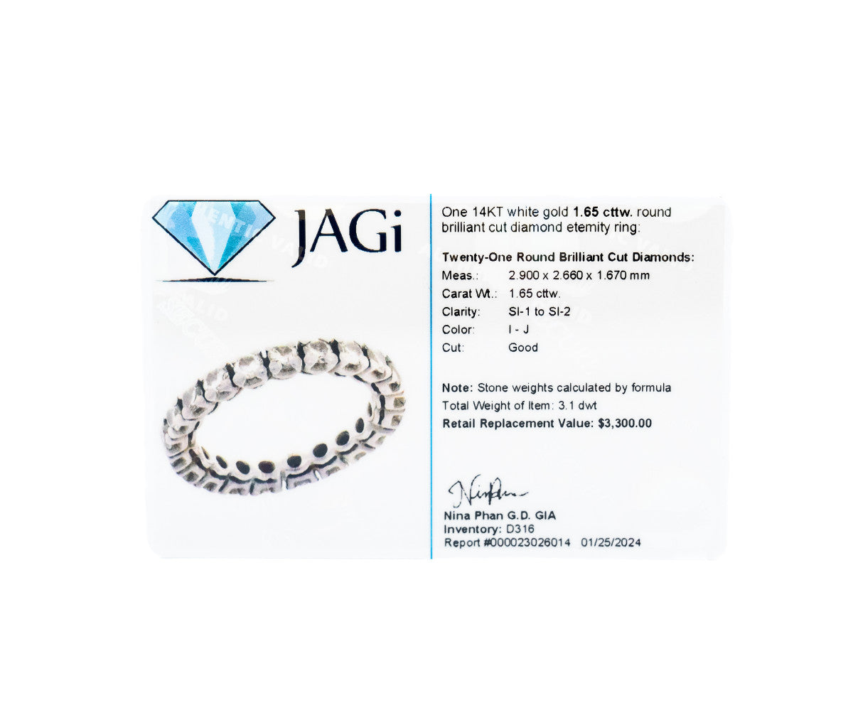 This Women's 14k 1.65ct Diamond Eternity Band is a beautiful representation of timeless elegance and enduring love. This ring features a continuous row of diamonds, totaling 1.65 carats, that encircle the band. The diamonds are set in a way that enhances their brilliance, . The uniform sparkle creates a captivating effect that catches the light beautifully. Crafted from 14k white gold, the band offers both durability and a luxurious finish. The choice of gold adds warmth and character, complementing the diamonds perfectly. Eternity bands are often given to symbolize unending love, making this ring a popular choice for anniversaries, wedding bands, or special occasions. Overall, this 14k diamond eternity band combines classic style with a modern touch, making it a stunning accessory that can be worn alone or stacked with other rings for a personalized look.