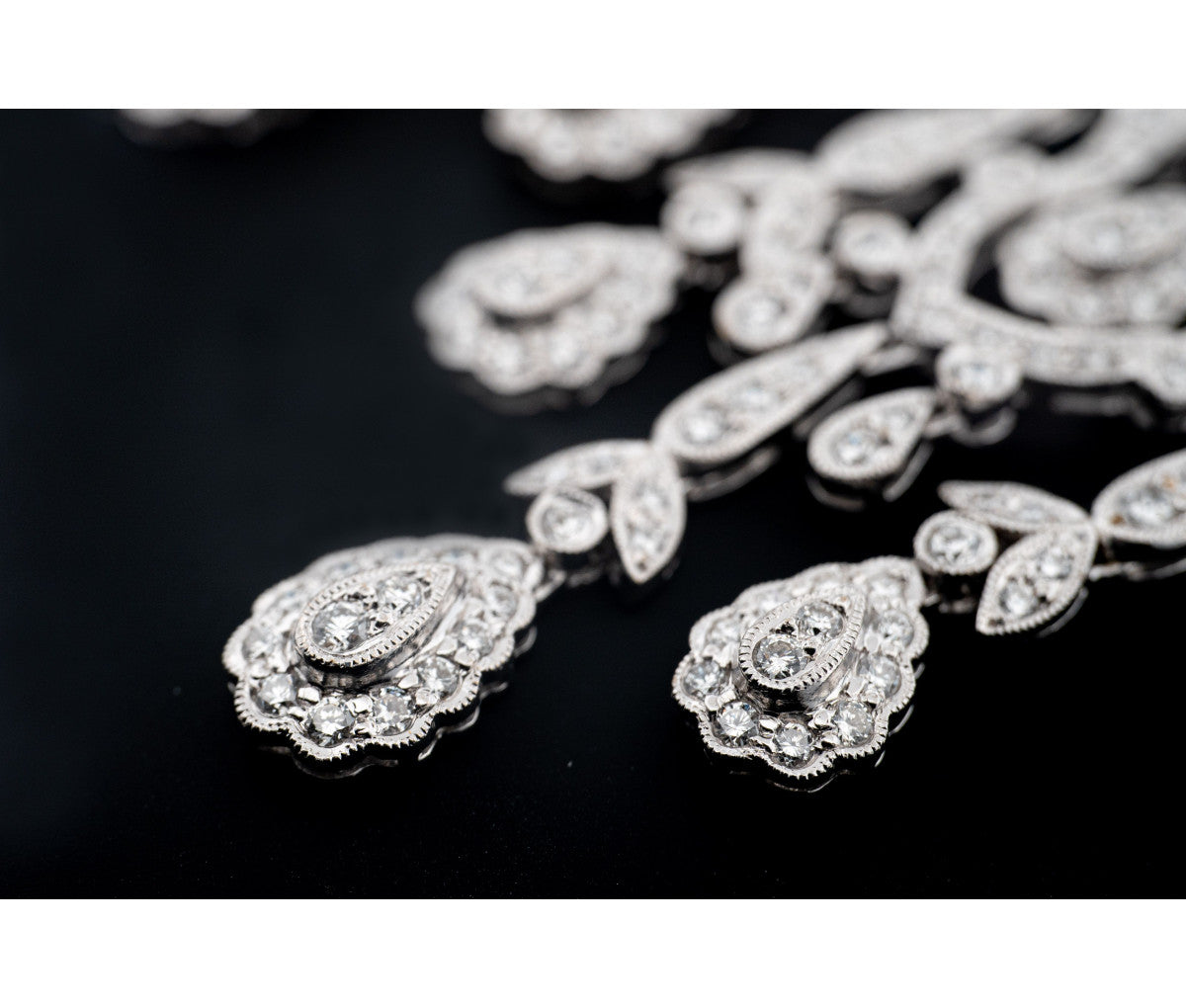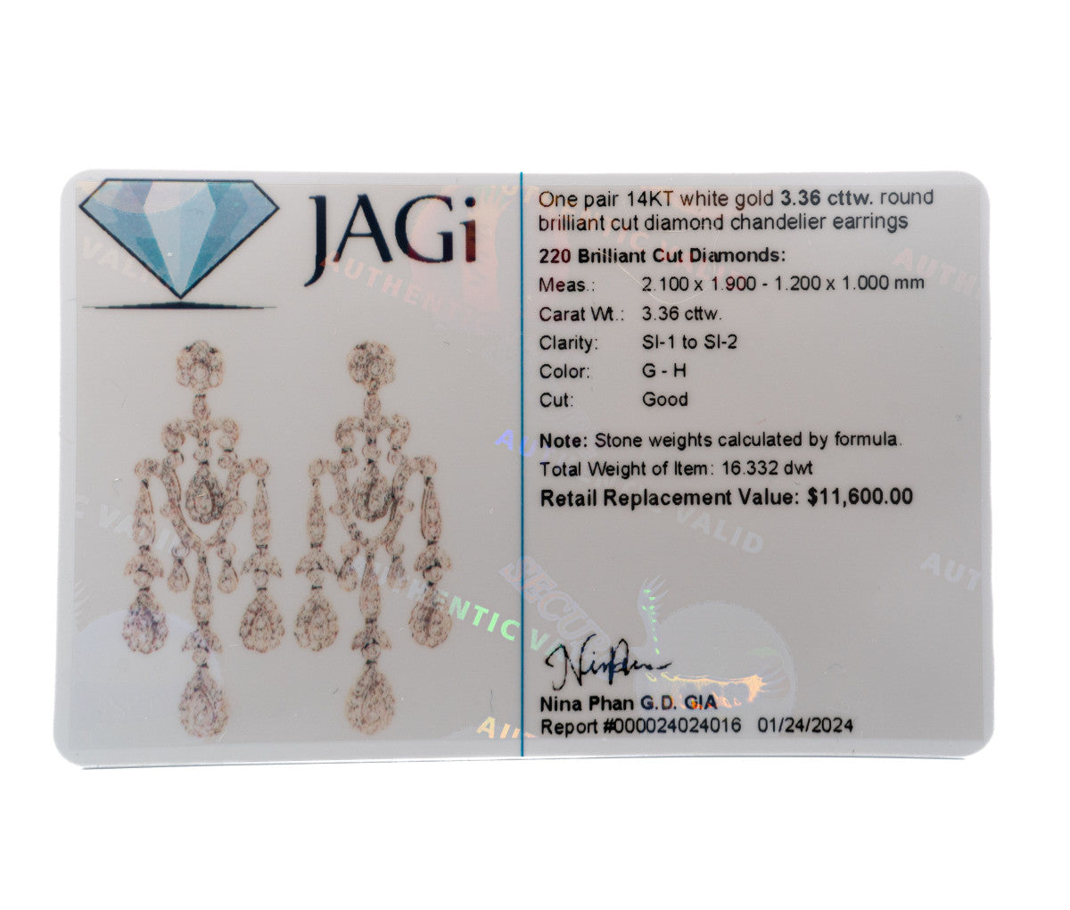 14k White Gold 3.36 Round Brilliant Cut Diamond Chandelier Earrings