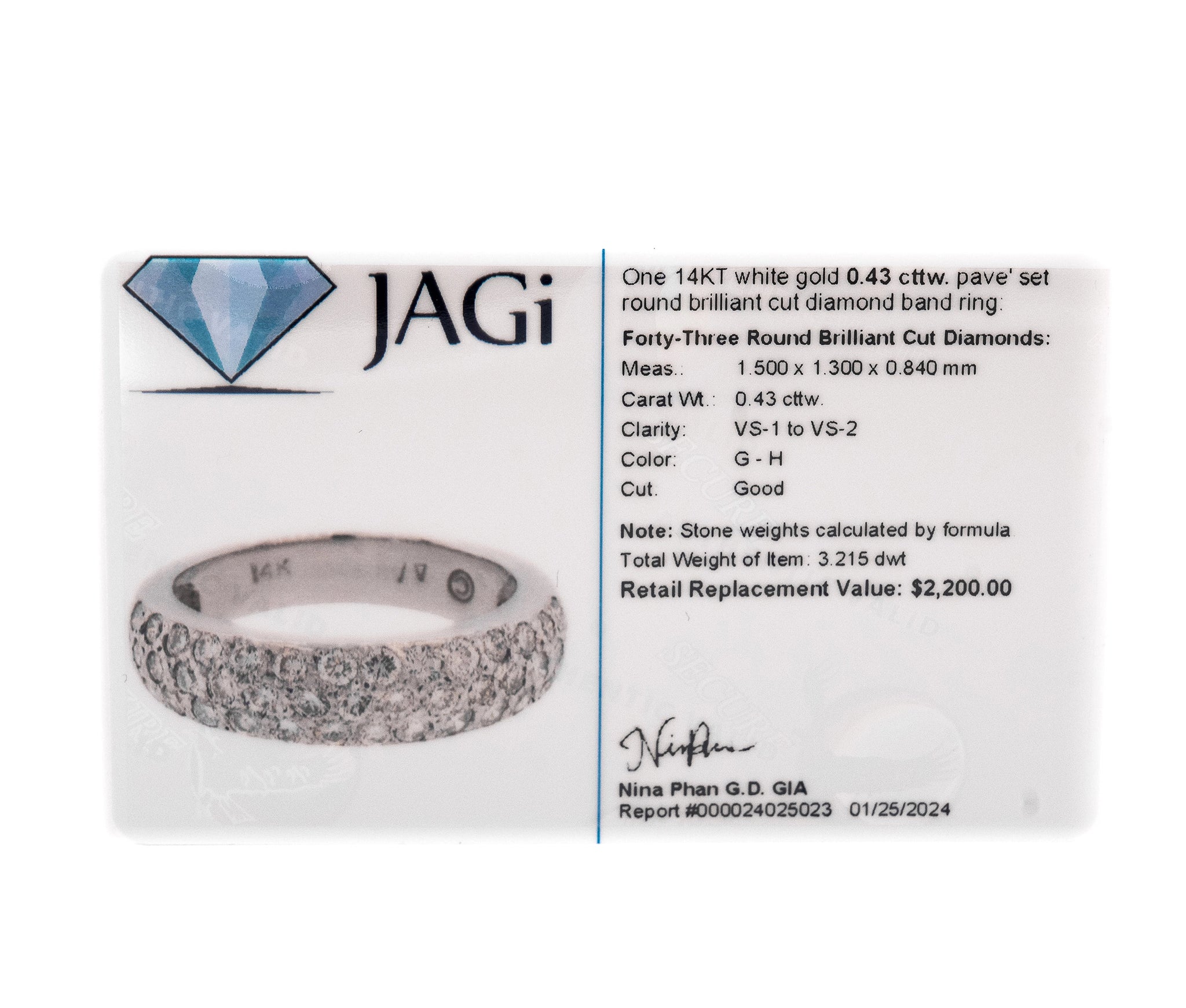 14K White Gold .43ct Diamond Band