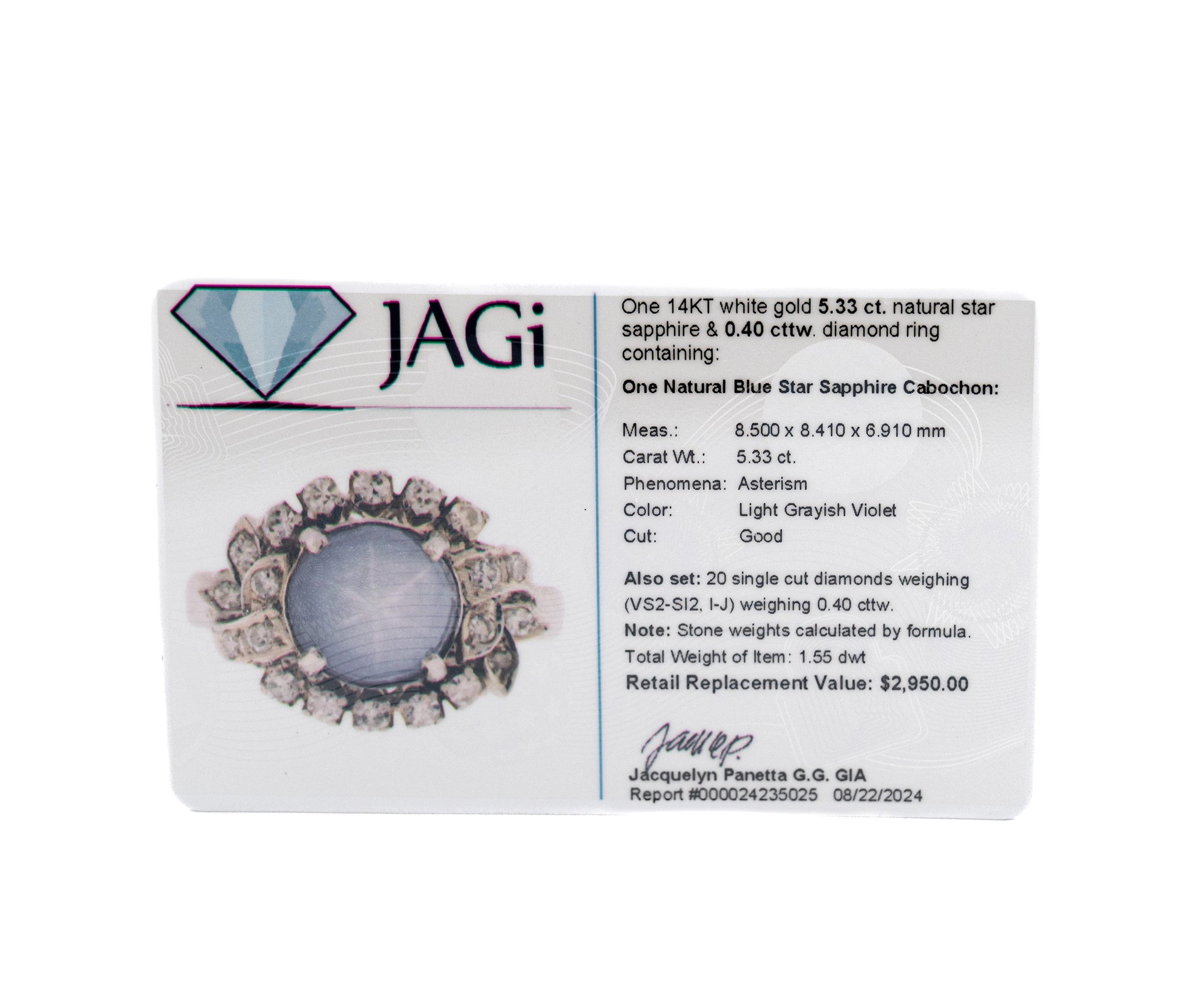 14K White Gold 5.33ct Natural Star Sapphire & 0.40 cttw. Diamond Ring