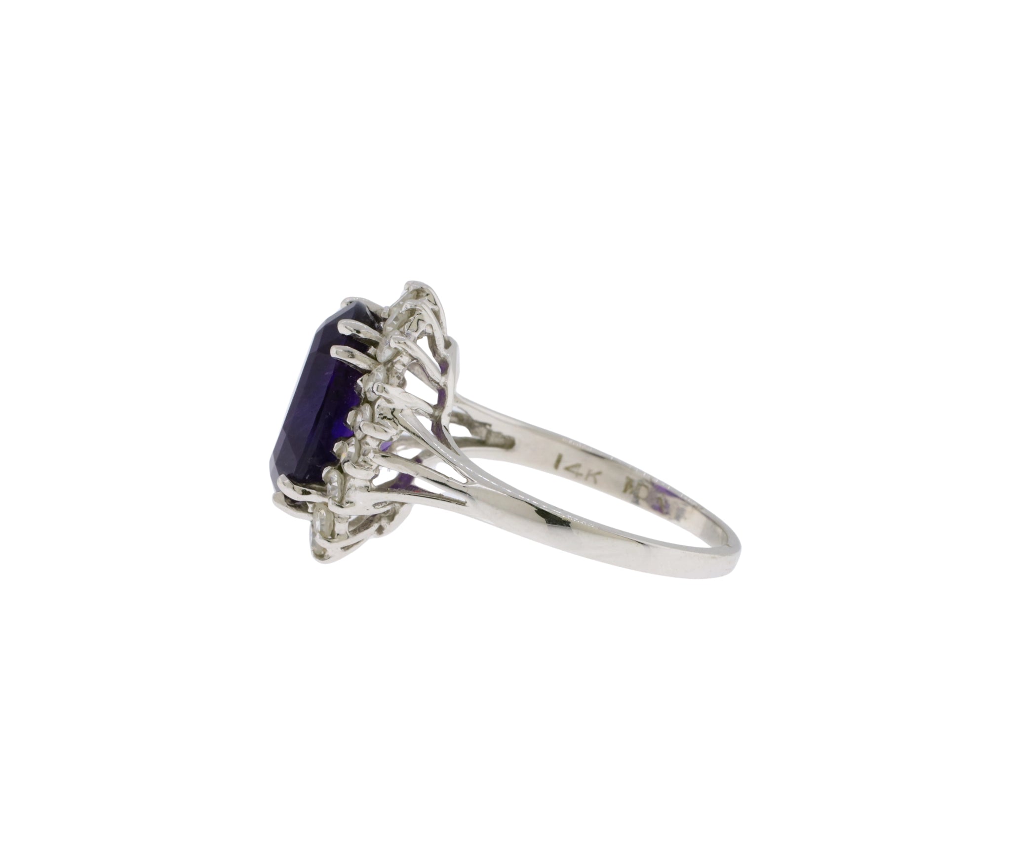 14K White Gold Amethyst and Diamond Oval Shaped Halo Style Ring