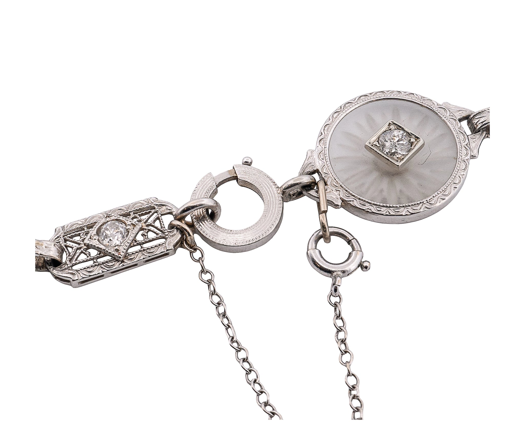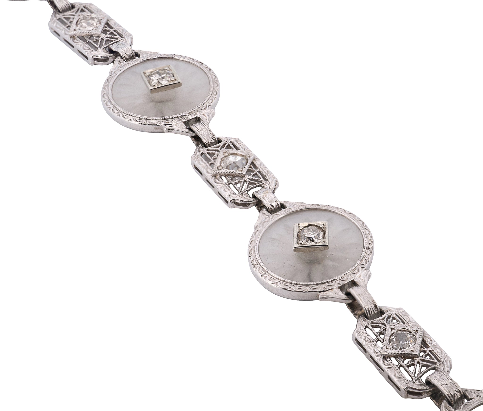 14K White Gold Antique Diamond & Rock Crystal Bracelet