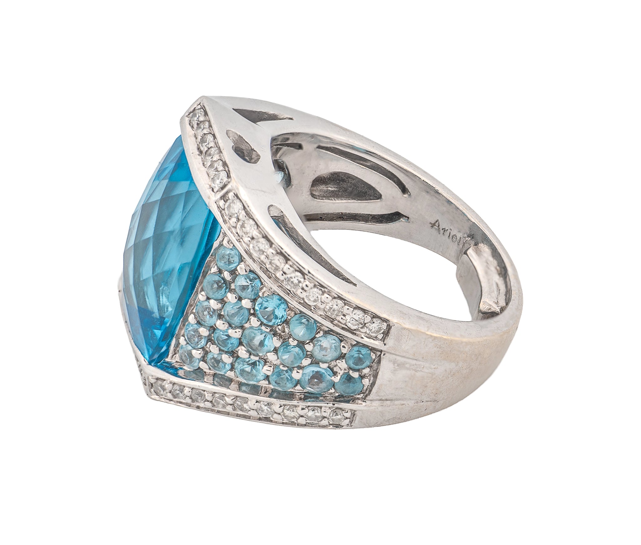 14K White Gold Blue Topaz & Diamond Pavé Statement Ring
