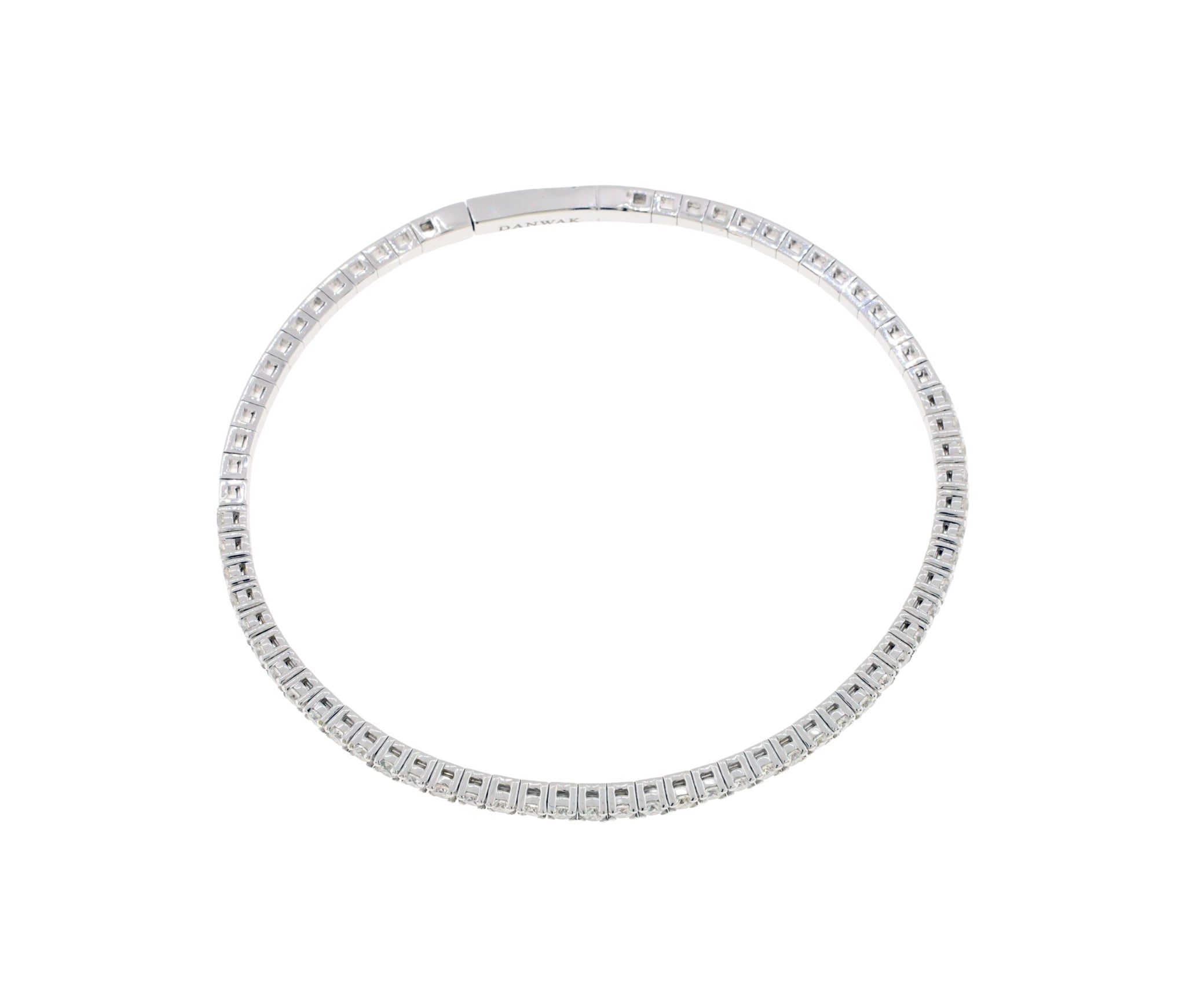 14K white gold Danwak 1.56 cttw. flexible bangle bracelet with 41 round brilliant cut SI1-I1 G-H diamonds.
