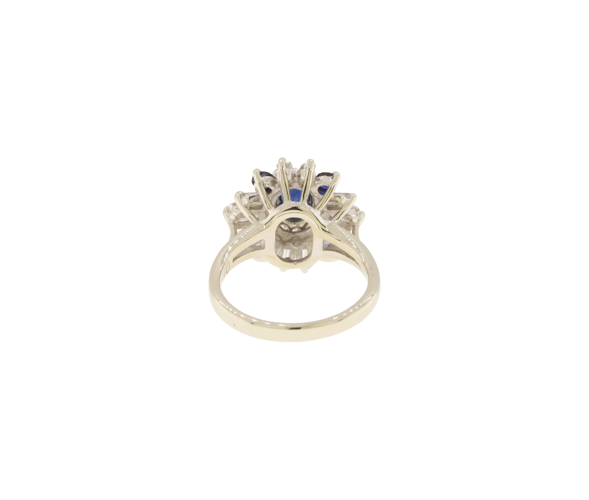 14K White Gold Diamond & Natural Sapphire Ballerina Style Ring
