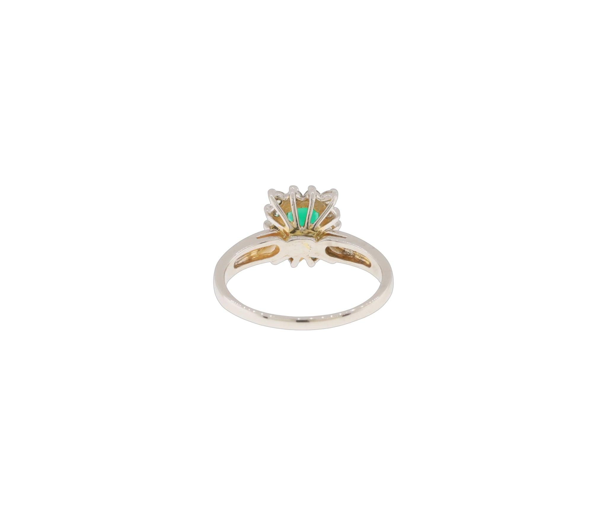 14K White Gold Natural Diamond & Lab Grown Emerald Halo Style Ring