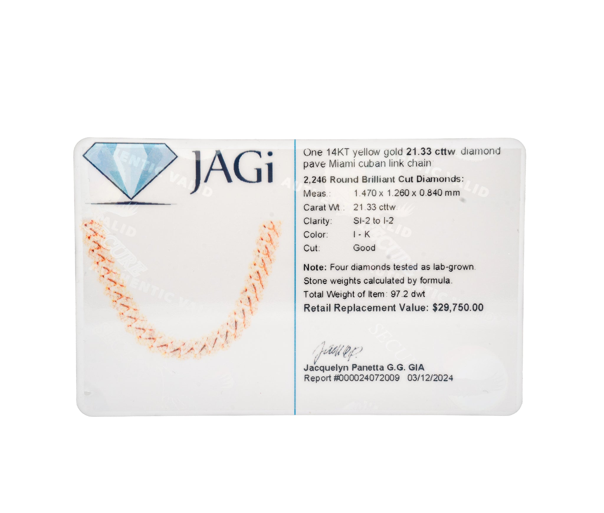 14K Yellow Gold 21 CTW Diamond Cuban Link Chain