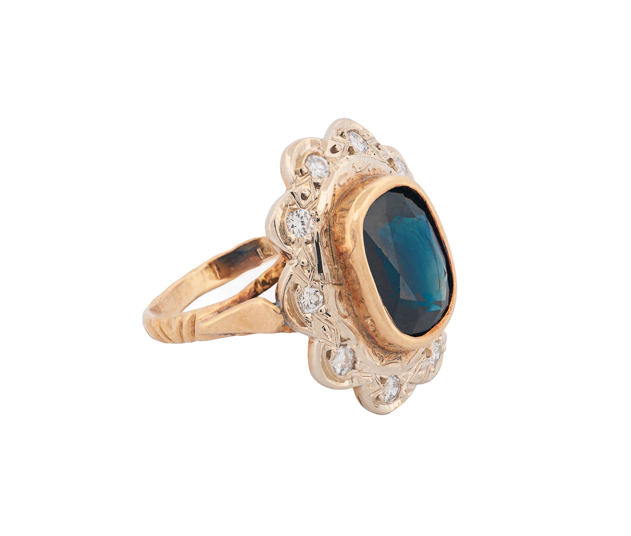 14K Yellow Gold Blue Sapphire & Diamond Halo Ring – 2.86 CT