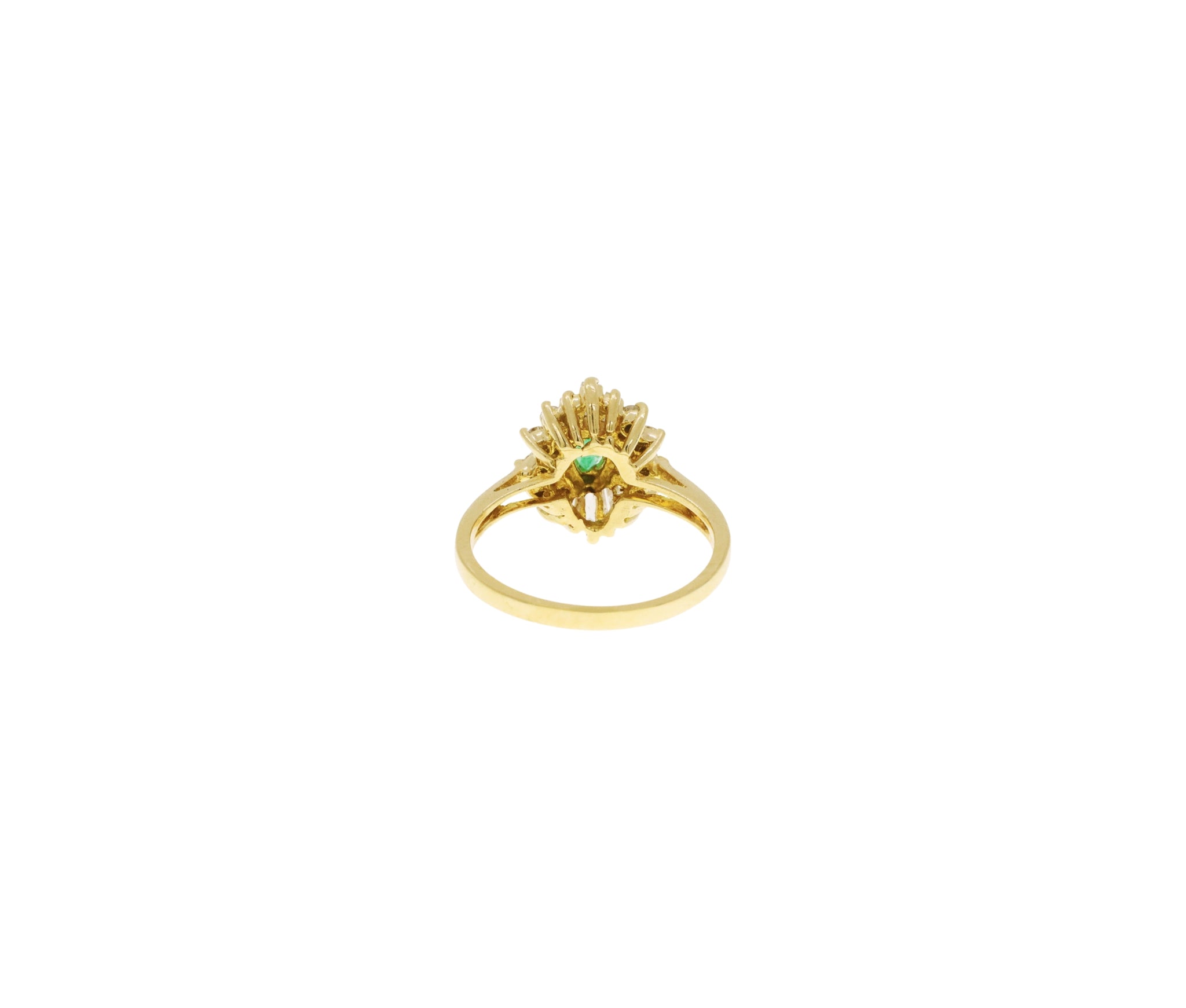 14K Yellow Gold Diamond and Natural Emerald Ballerina Style Ring