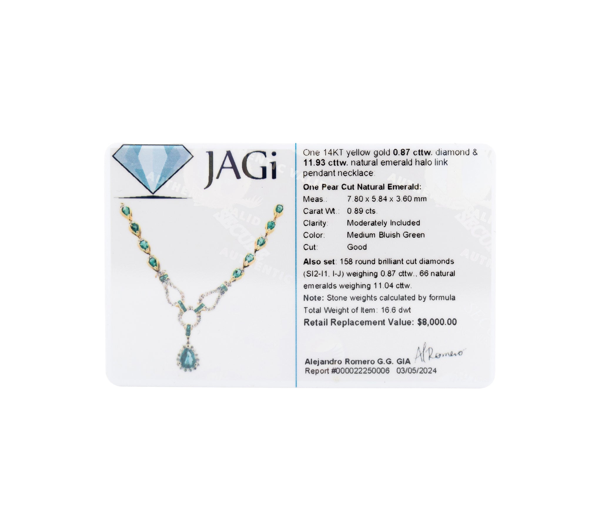 Elevate your look with this exquisite 14KT Yellow Gold Pendant Necklace featuring a mesmerizing combination of natural emeralds and sparkling diamond halos. The elegant link design adds a touch of timeless charm to the vibrant color palette. With a total stone weight exceeding 3.01 carats, this necklace is a true statement piece that exudes luxury and sophistication. Ideal for those who appreciate fine jewelry craftsmanship and exquisite gemstone combinations.