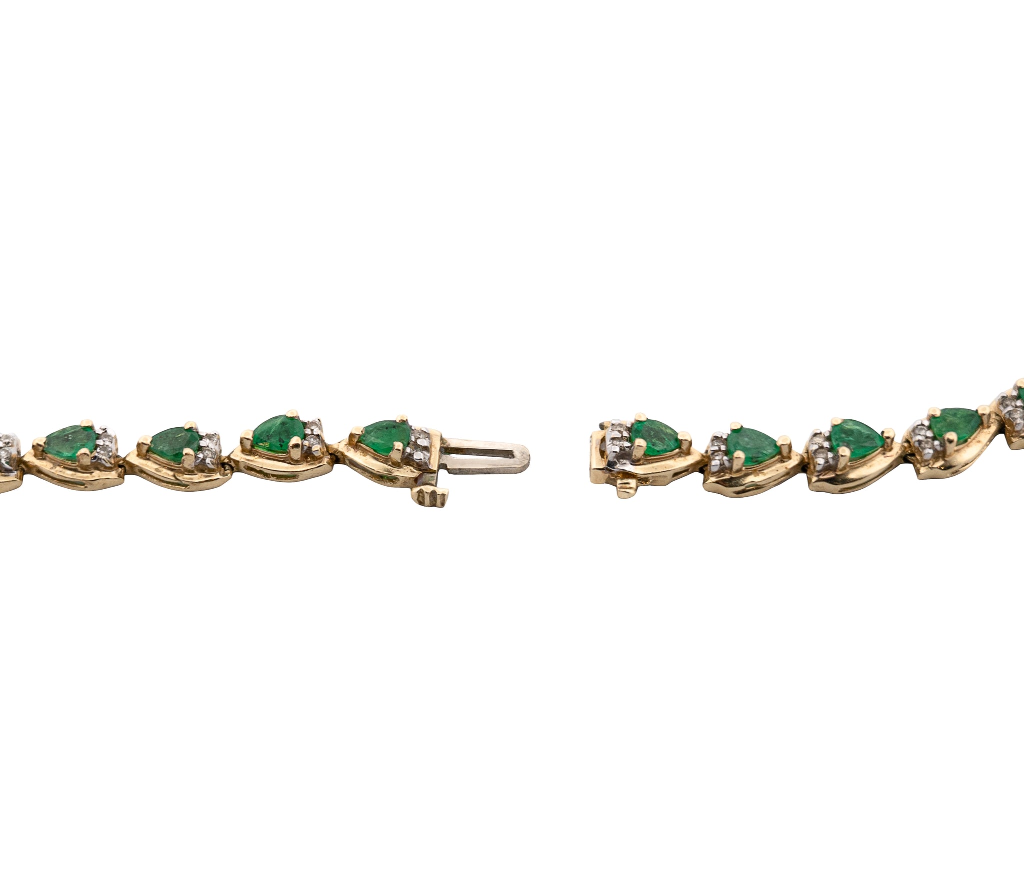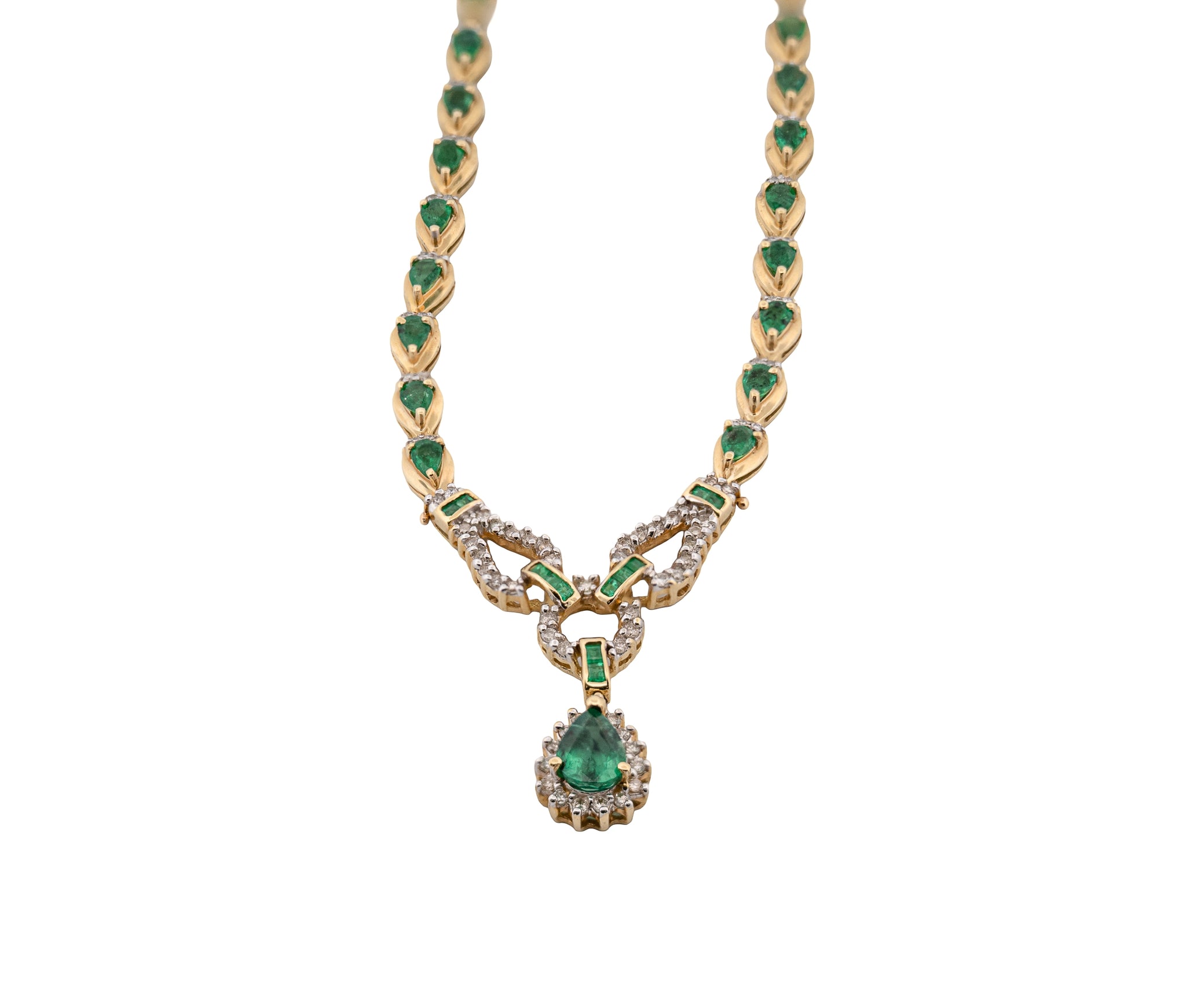 14K Yellow Gold Diamond & Natural Emerald Halo Link Pendant Necklace
