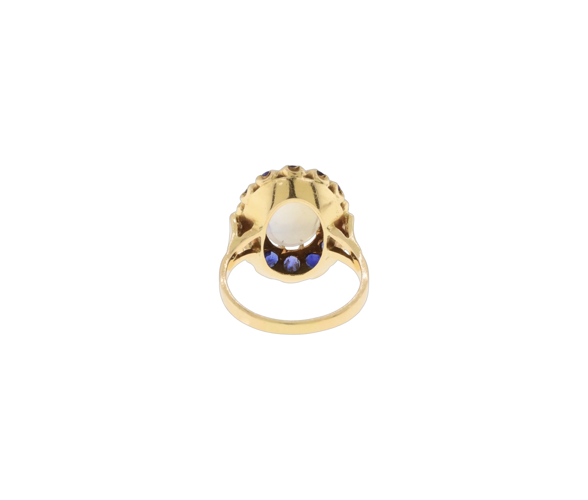 14K Yellow Gold Moonstone & Natural Blue Sapphire Halo Style Ring