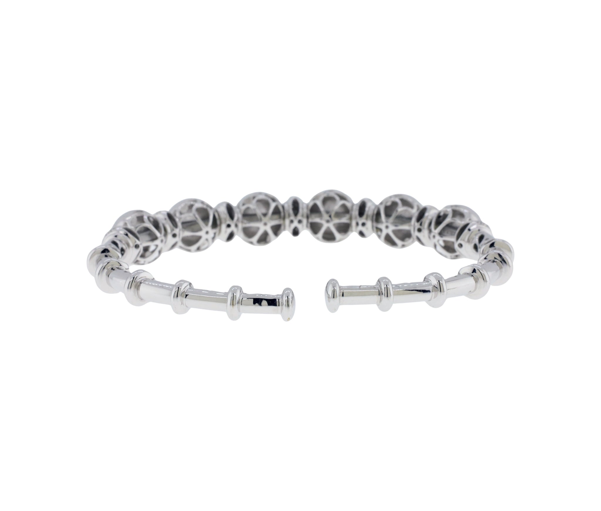 18K White Gold 0.52Ct Diamond Bead Design Cuff Bracelet