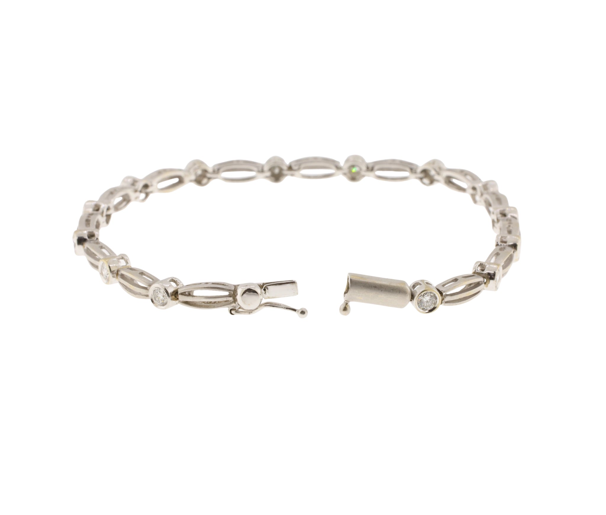 18K White Gold Bezel Set Round Brilliant Cut Diamond Link Bracelet