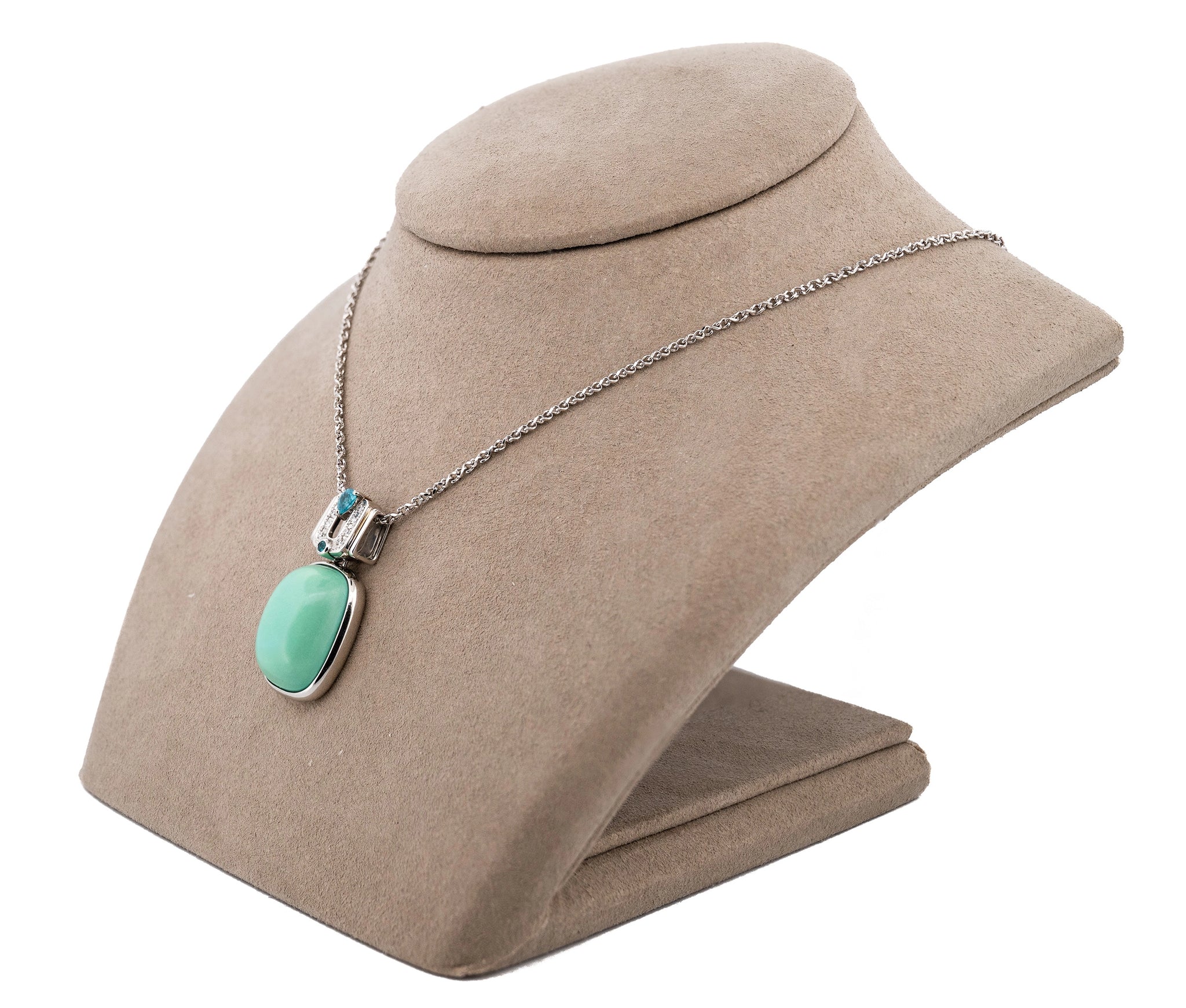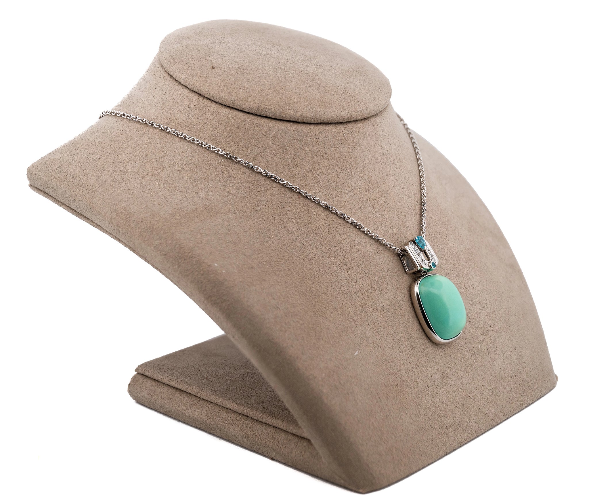 18K White Gold & Platinum Turquoise, Tourmaline, & Diamond Pendant Necklace