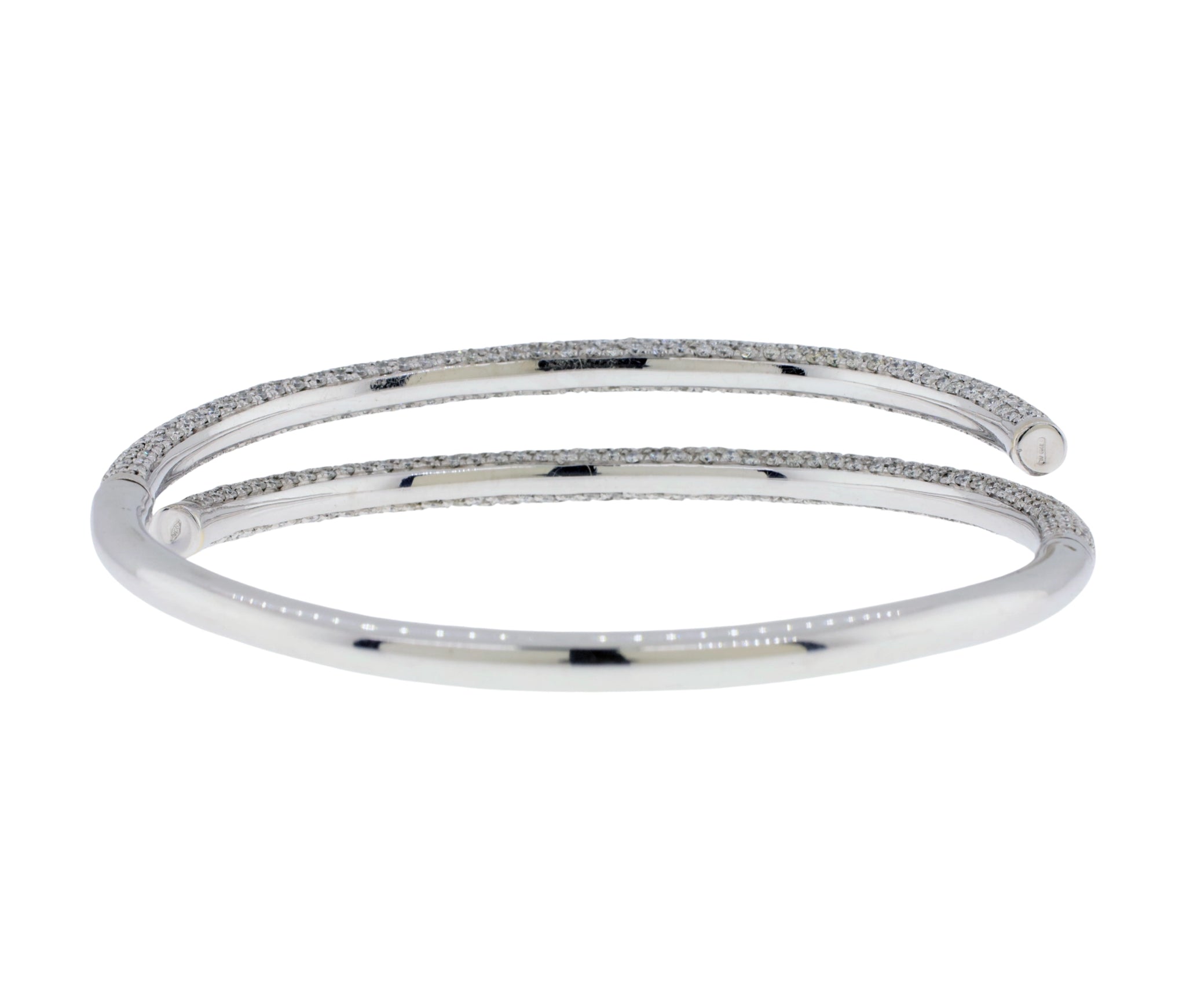 18K White Gold Preziosismi 5.86Ct Diamond Pave Bypass Style Bangle Bracelet