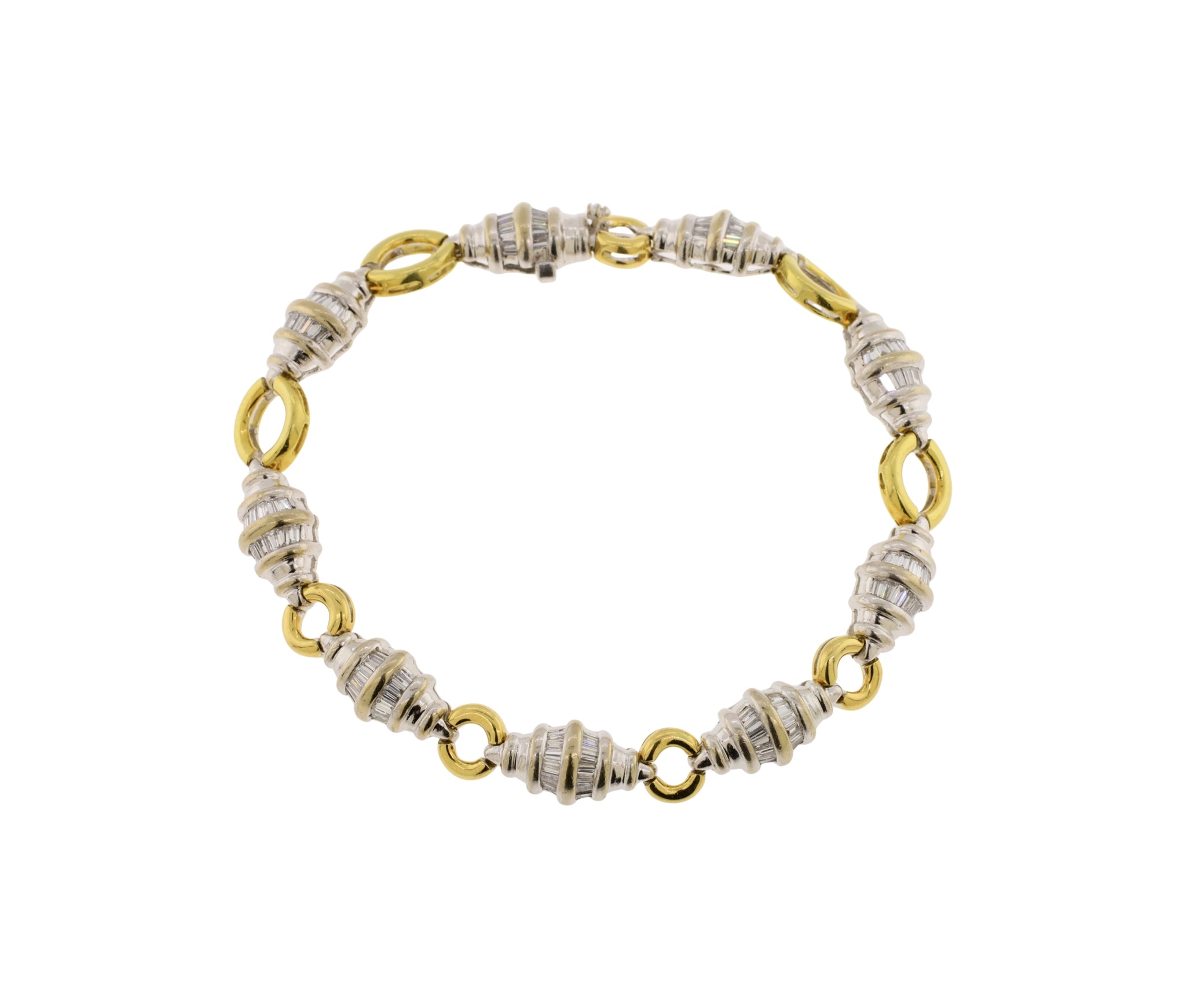18K White & Yellow Gold Two-Tone Baguette Cut Diamond Bracelet