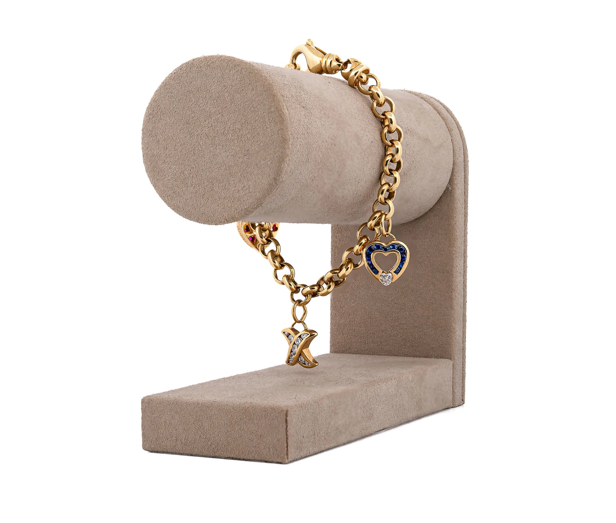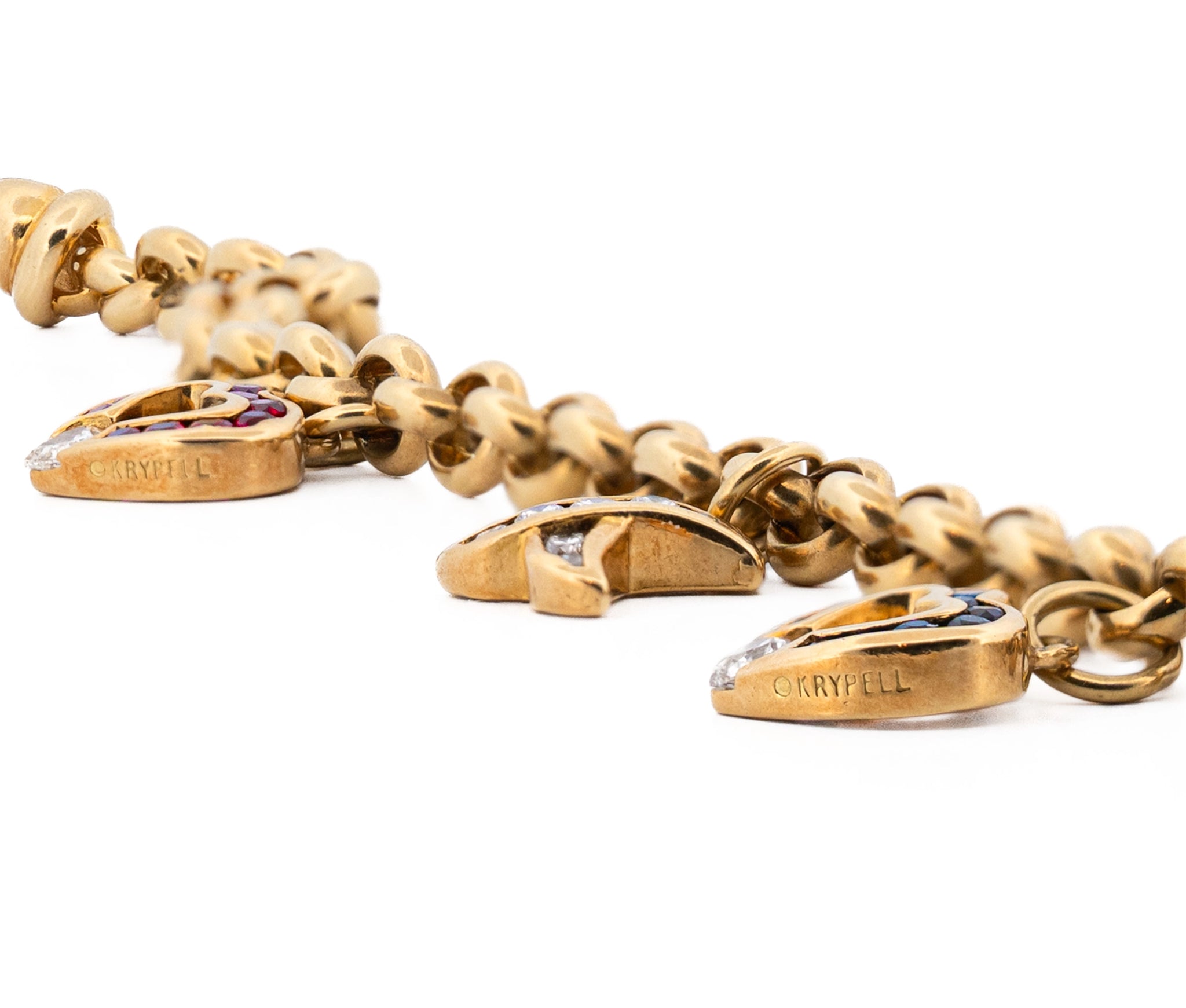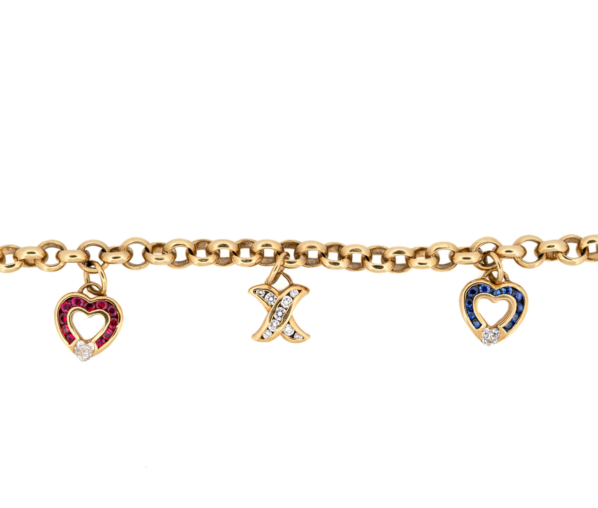 18K Yellow Gold Charles Krypell Sapphire, Ruby, & Diamond Charm Bracelet