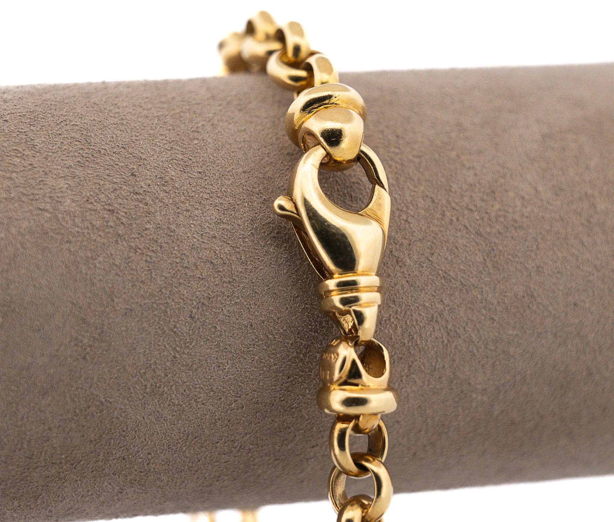The Charles Krypell Sapphire Ruby Diamond Charm Bracelet is a luxurious piece of fine jewelry that typically features a mix of precious stones such as sapphires, rubies, and diamonds set in 18k yellow gold. Charles Krypell is known for crafting exquisite and timeless designs, and this bracelet is likely a reflection of his attention to detail and use of high-quality materials. The bracelet is adorned with charms that may include intricate designs incorporating the gemstones. The sapphires and rubies add vibrant color, while the diamonds offer brilliance and sparkle, all complemented by the warm hue of 18k yellow gold.
