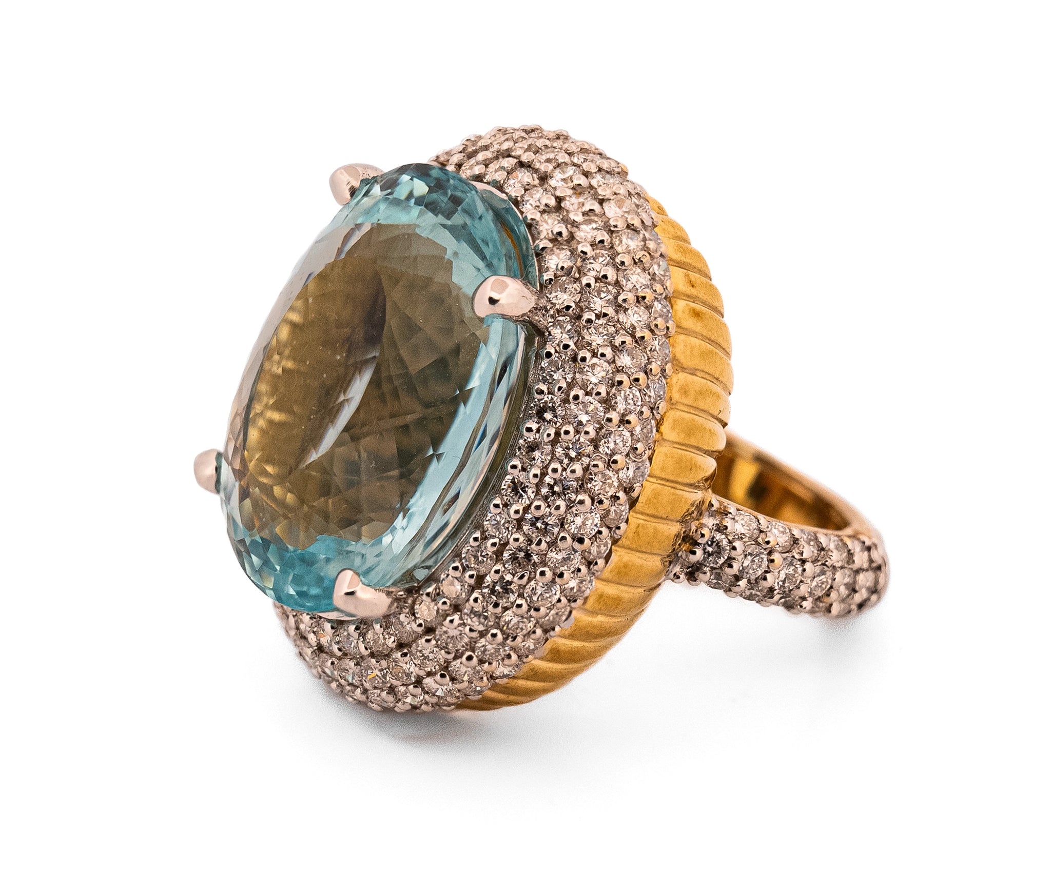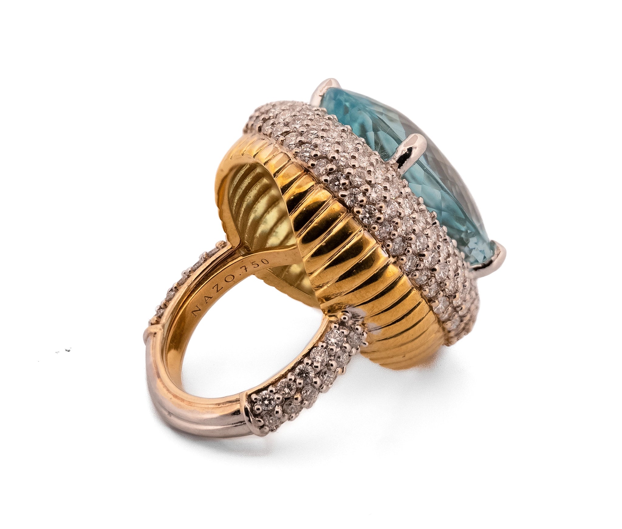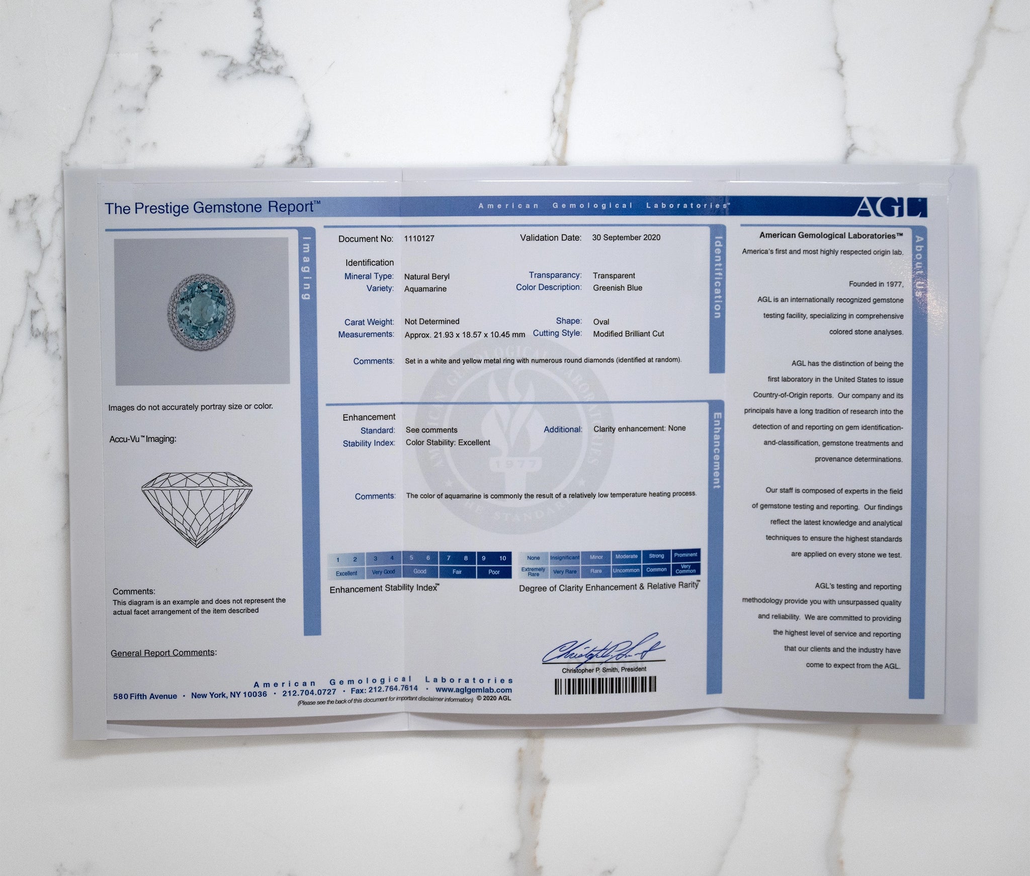 18k Yellow & White Gold Aquamarine Diamond Halo Ring 3.72ct