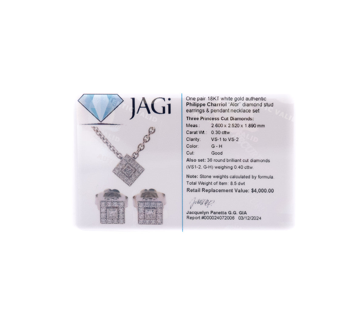 18kt White Gold Philippe Charriol "Alor" Diamond Stud Earrings & Necklace Set