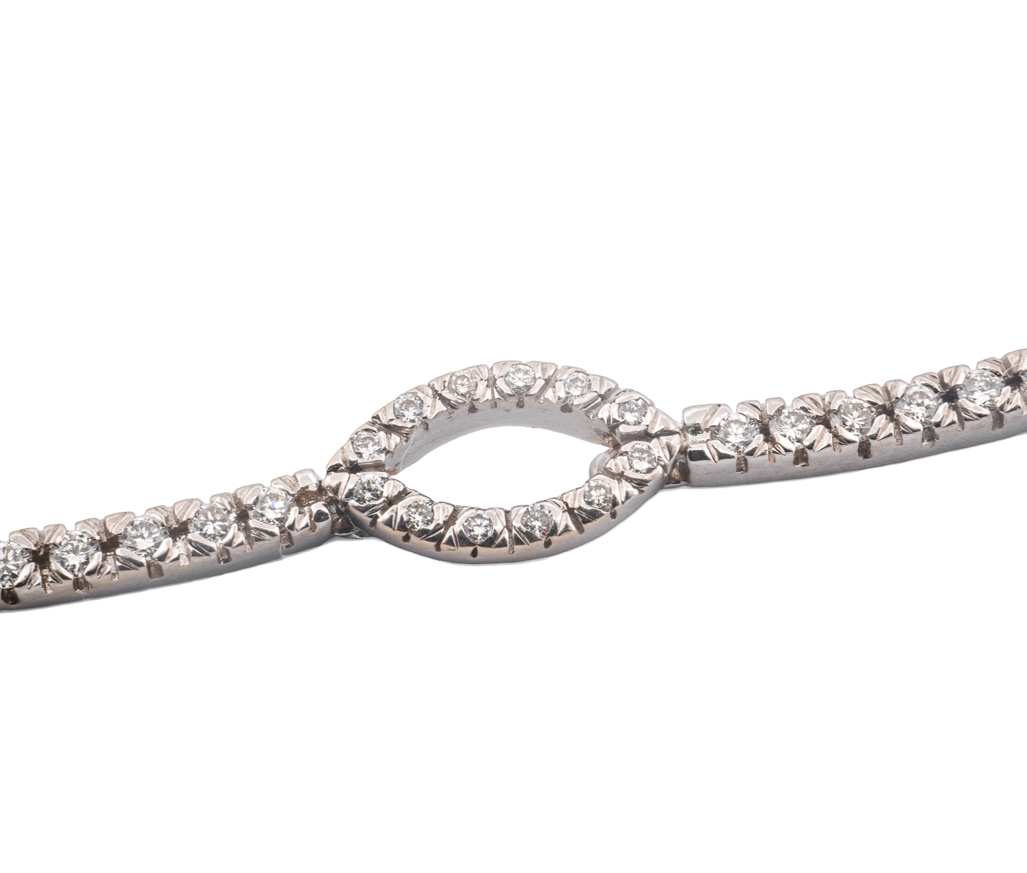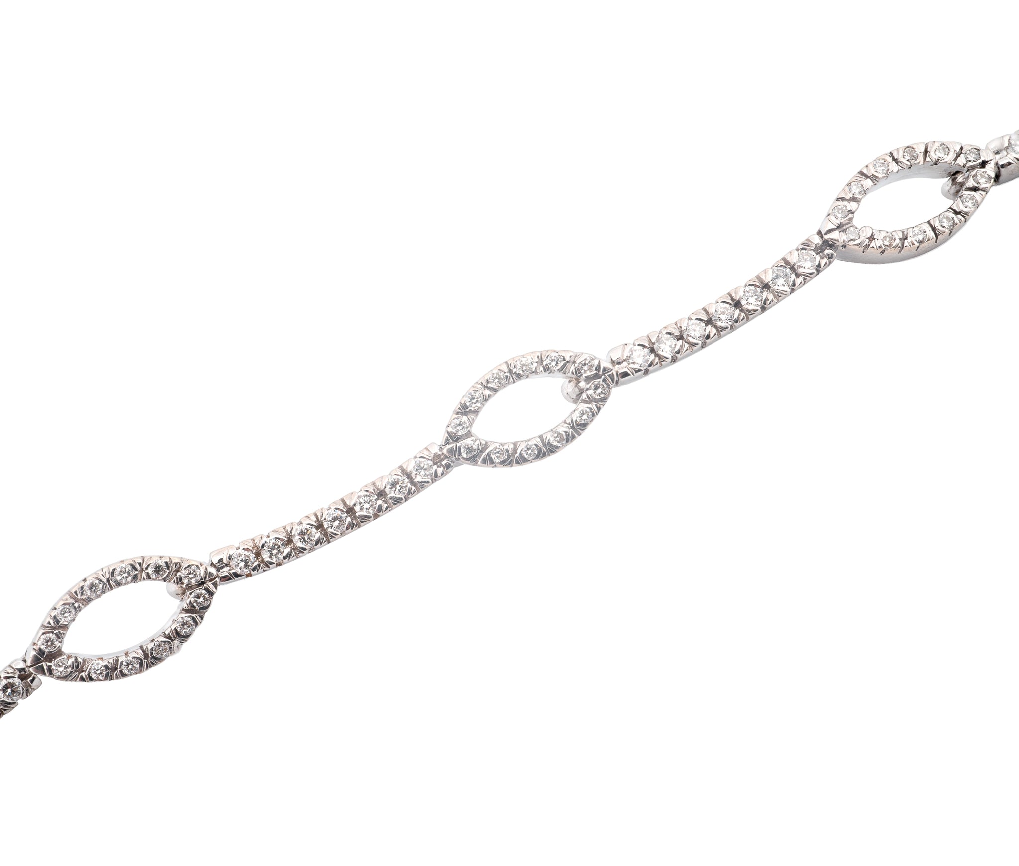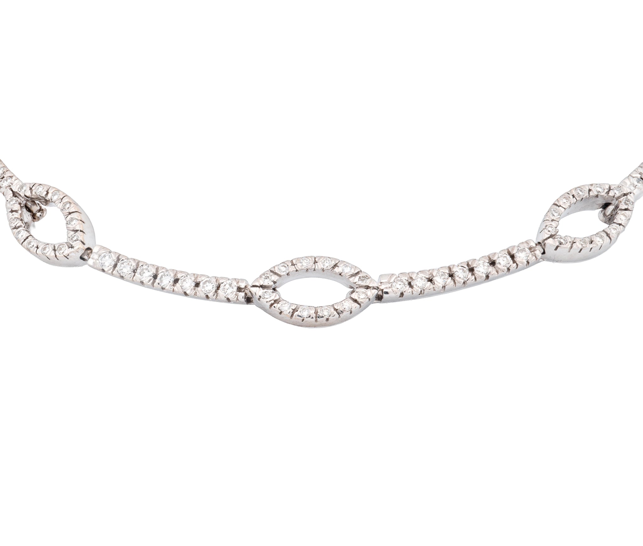 18KT White Gold Round Brilliant Cut Diamond Marquise Link Necklace