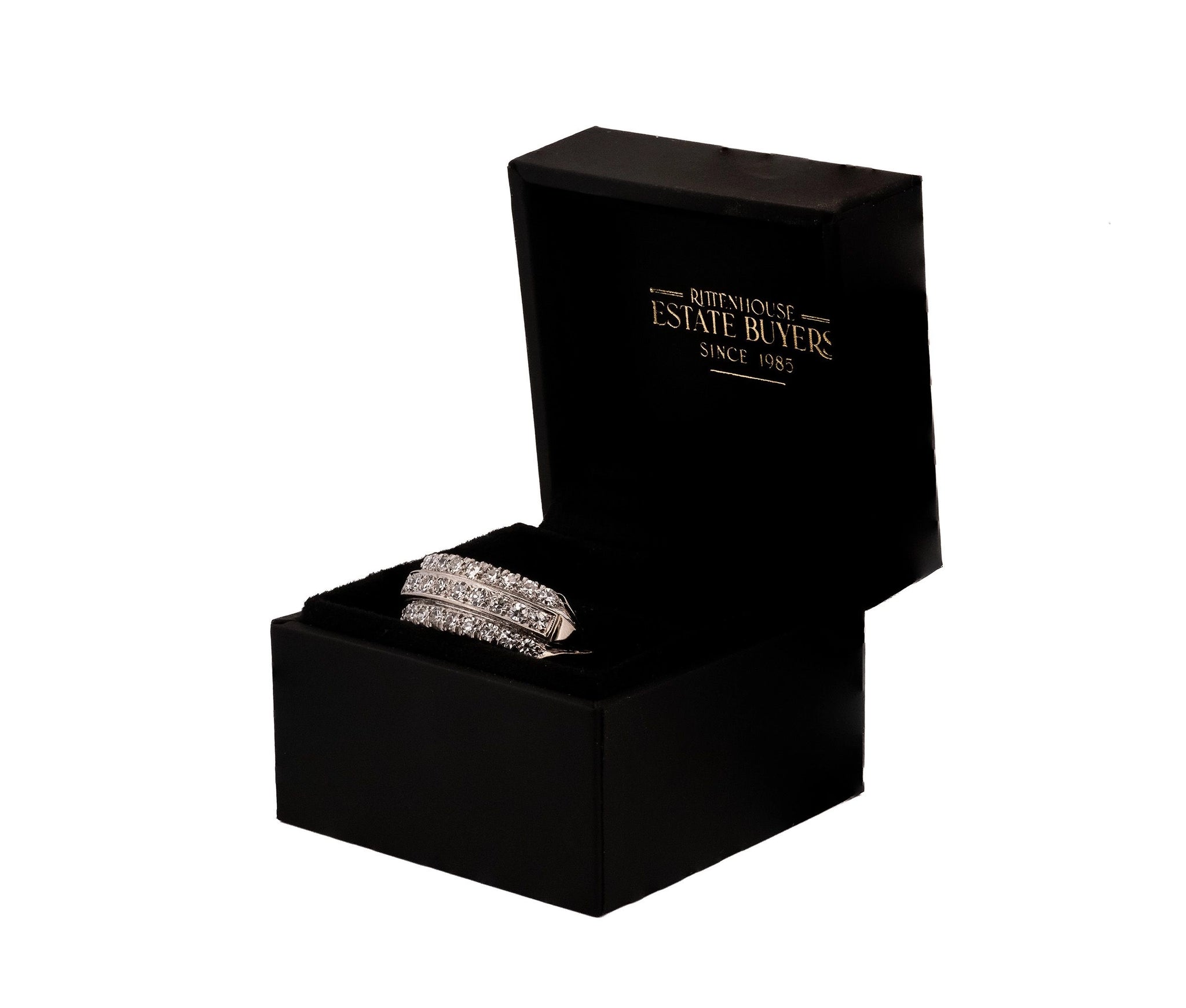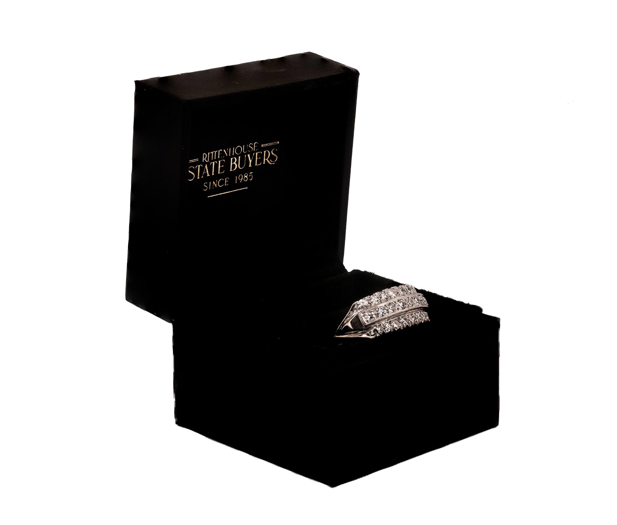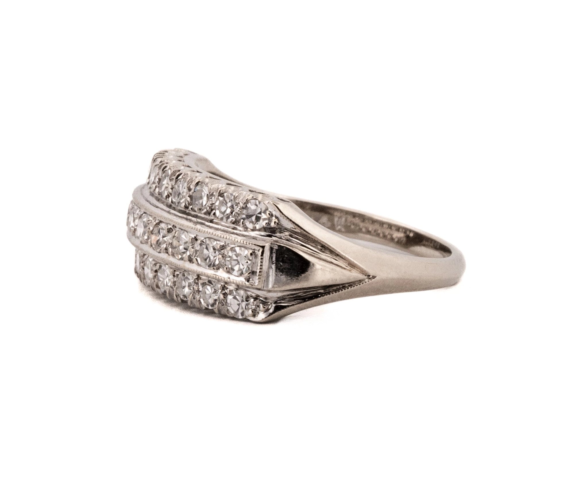 Enhance your elegance with this exquisite Antique 14k White Gold Diamond Band. Crafted with precision and featuring dazzling diamonds, this timeless piece is perfect for adding a touch of sophistication to your look. Whether for a special occasion or everyday wear, this band radiates luxury and style. Make a statement with this beautiful piece that combines the allure of antique design with the brilliance of diamonds.