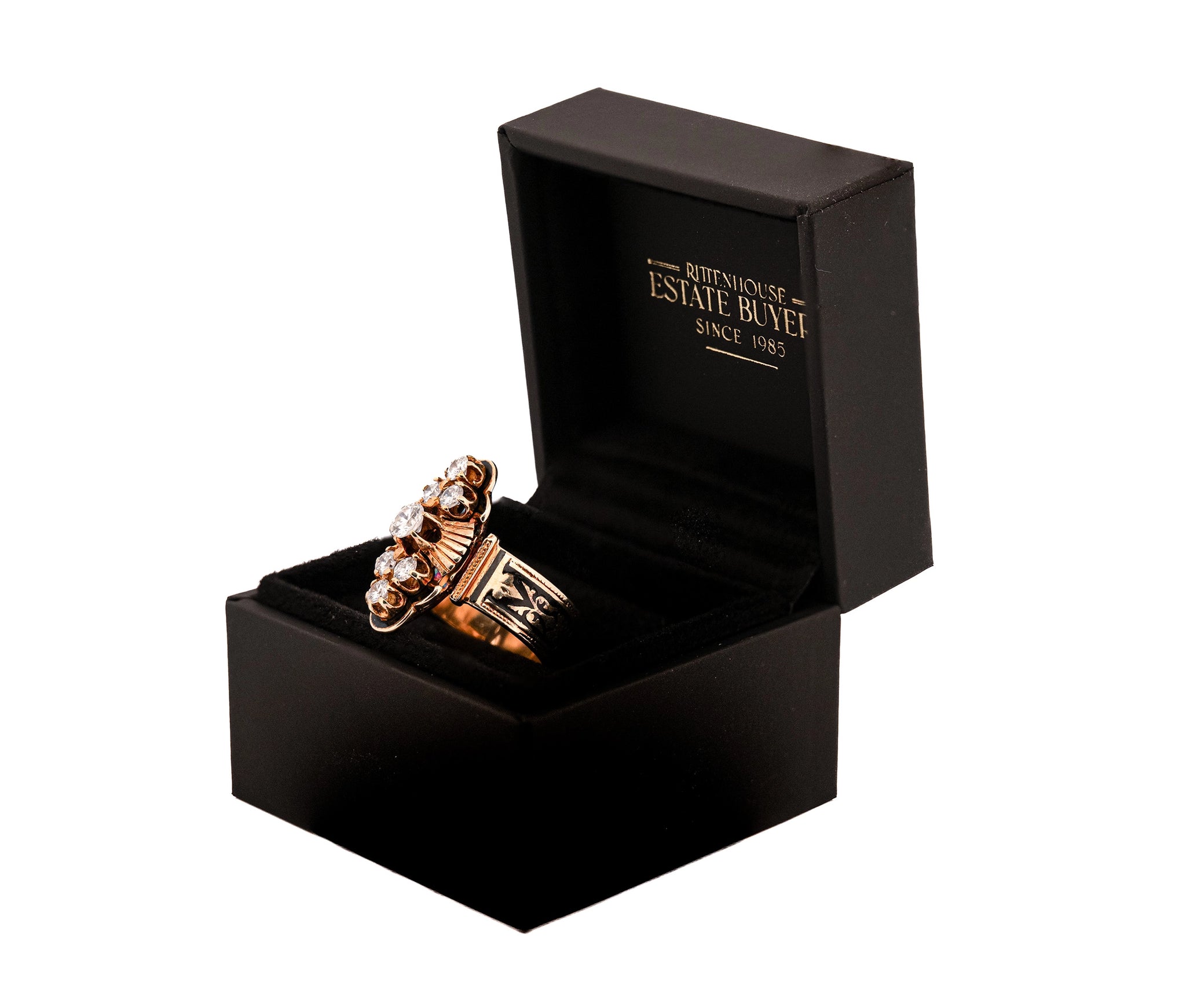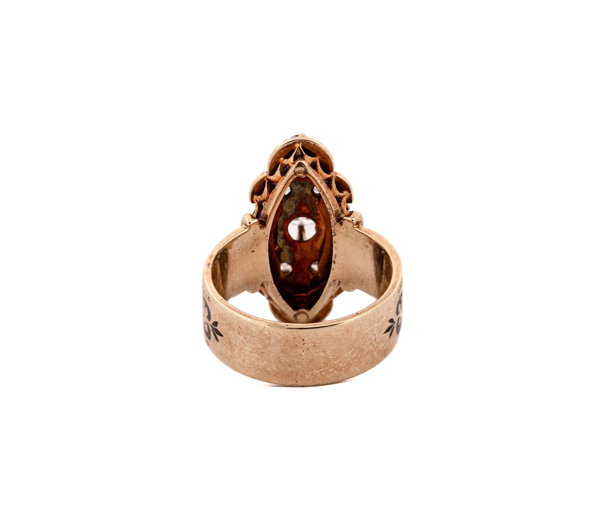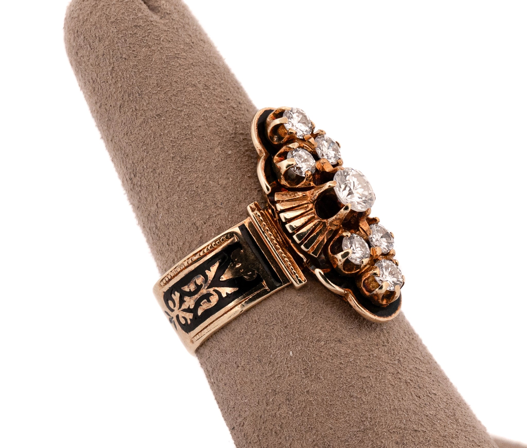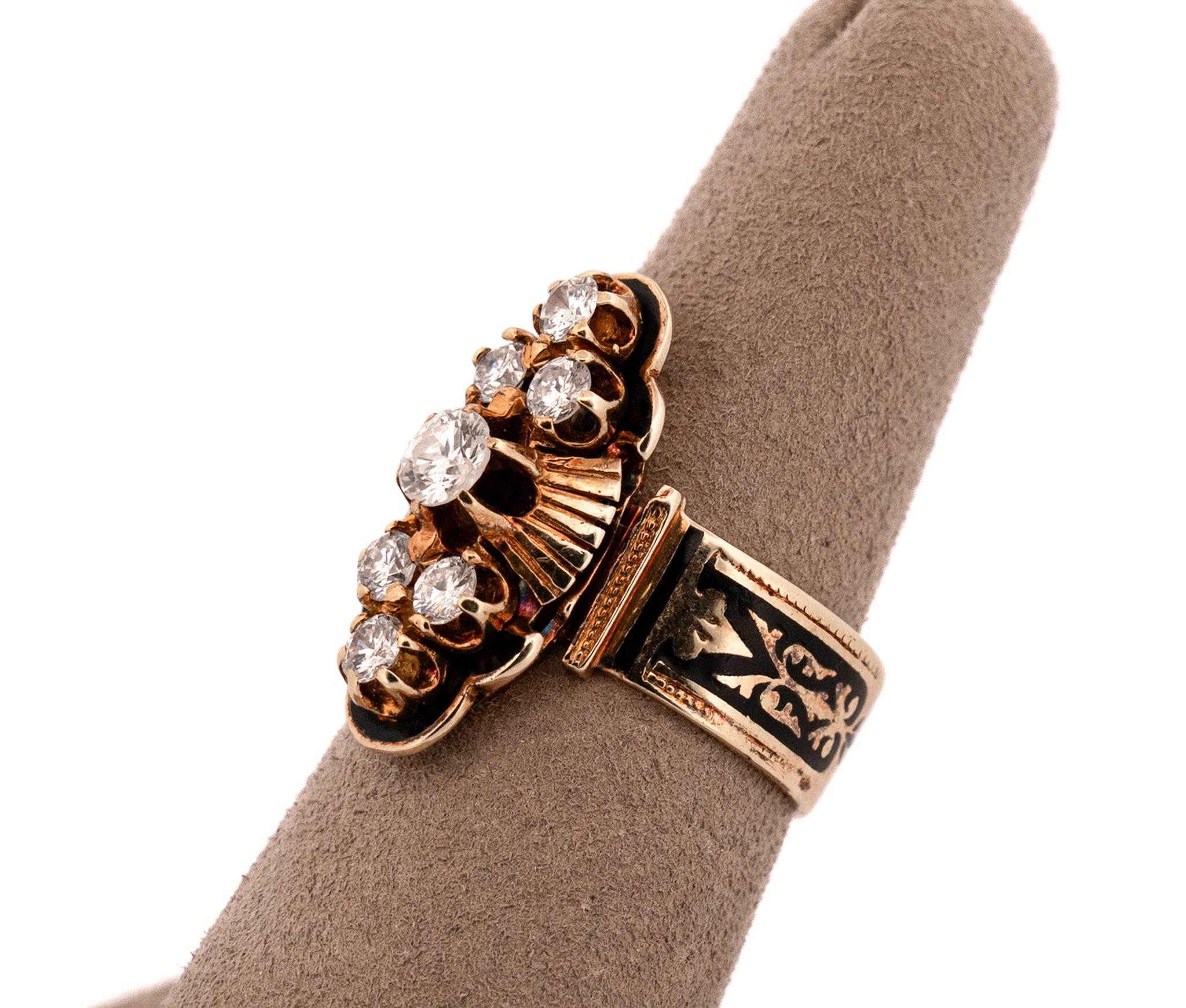 Antique 14K Yellow Gold 0.85Ct Diamond and Enamel Ring