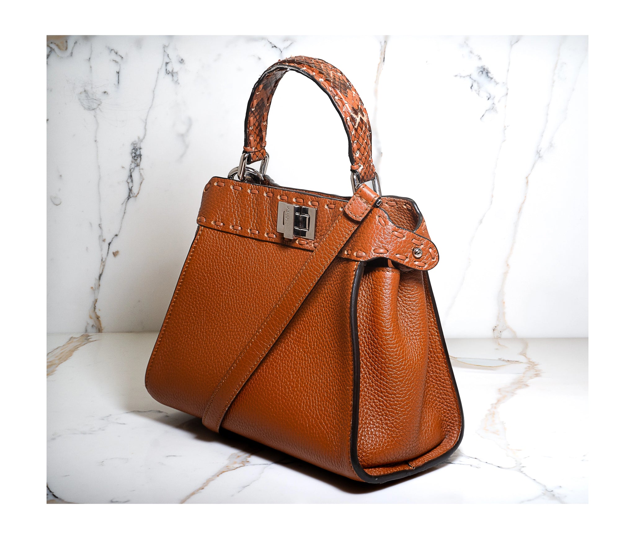 Authentic Fendi Selleria Mini Peekaboo Satchel – Cuoio Romano Leather Snakeskin