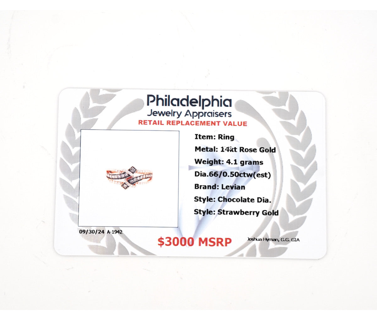 This Women’s LeVian 14k Chocolate Diamond Ring in size 8.5 is a captivating piece that showcases a unique and luxurious design. Crafted from 14k gold, this ring features .50ct of stunning chocolate diamonds, known for their rich, earthy tones that offer a distinctive contrast to traditional white diamonds.