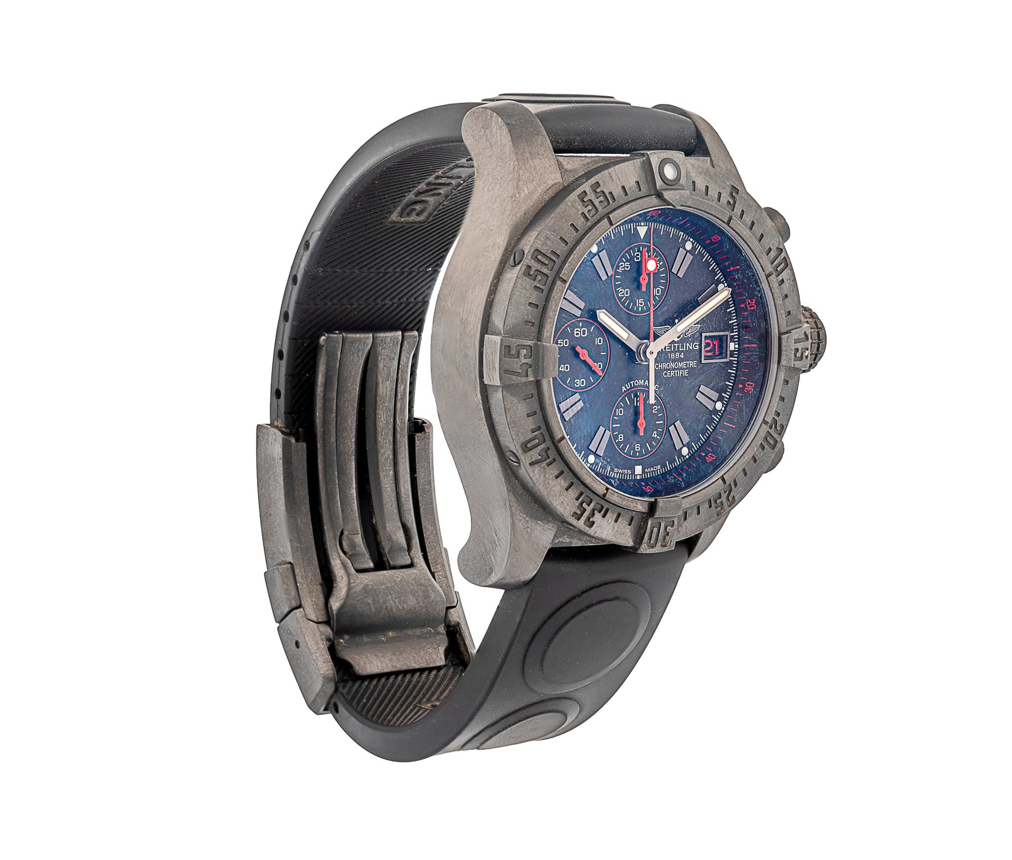Breitling Avenger Hurricane Chronograph – Black Case, Blue Dial, Rubber Strap