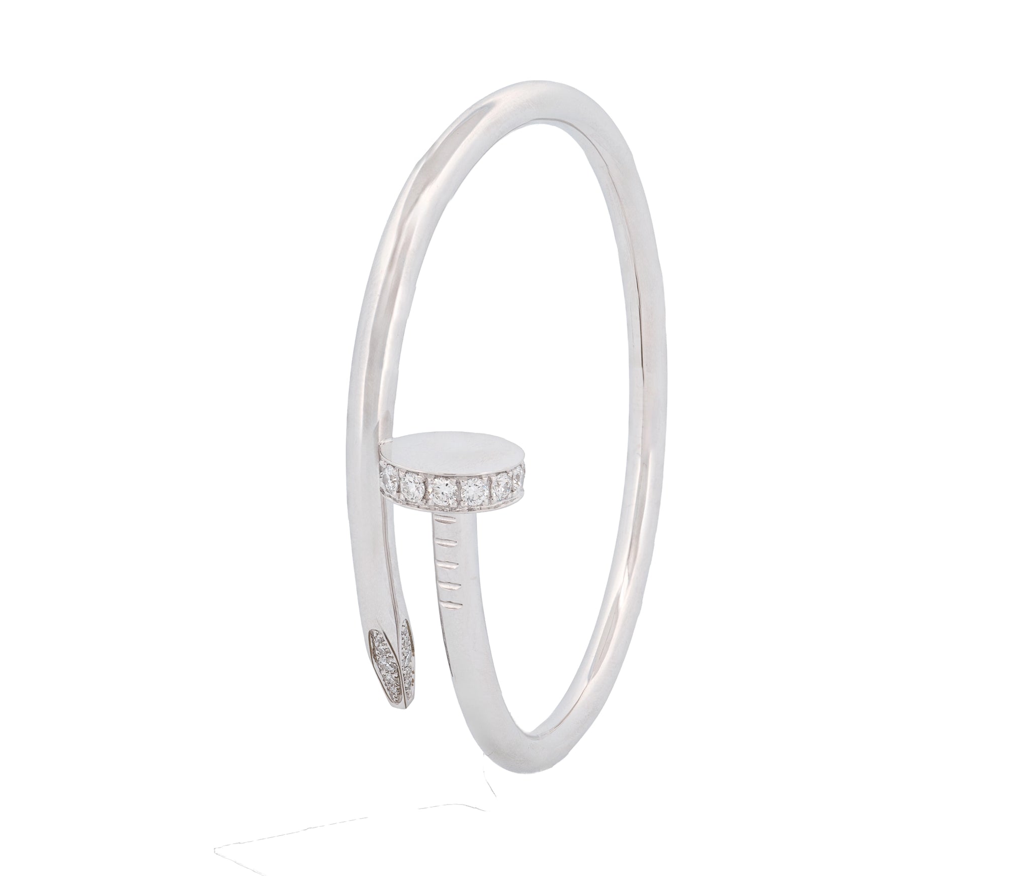 Cartier 18k White Gold Diamond Juste Un Clou Nail Bracelet Size 15