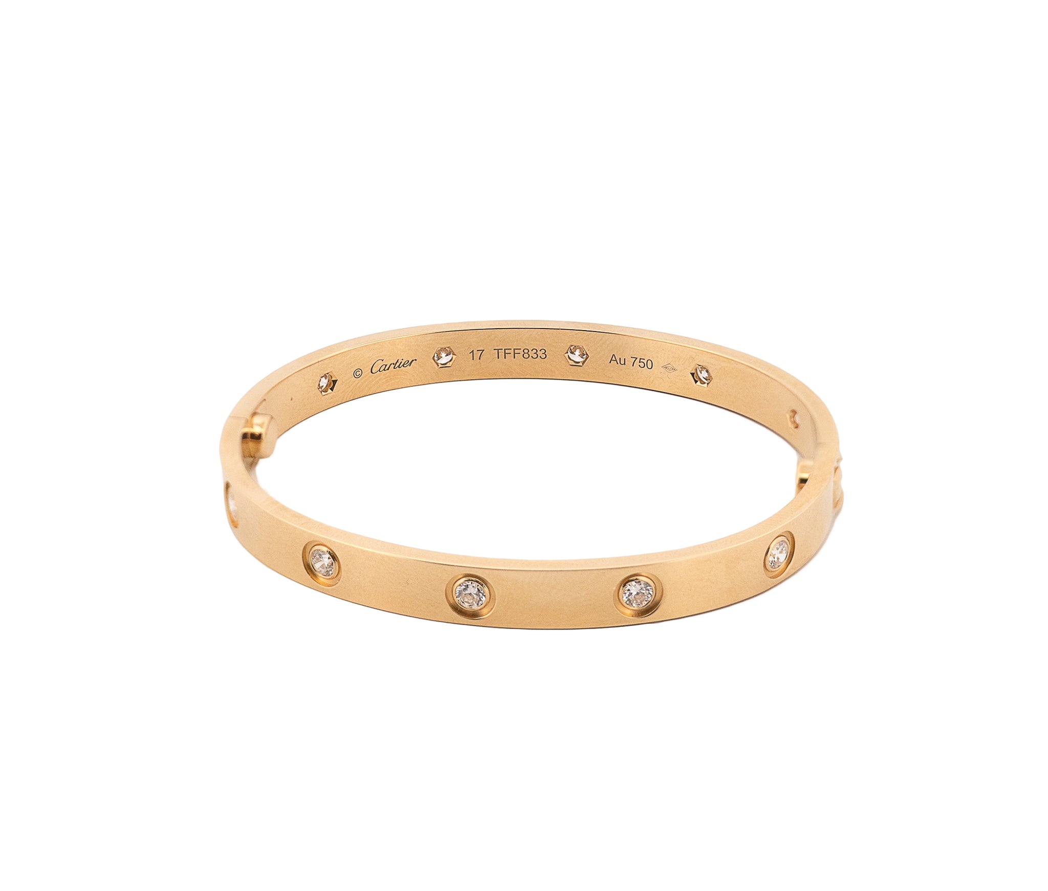 Cartier 18K Yellow Gold 10 Diamond Love Bracelet Size 17