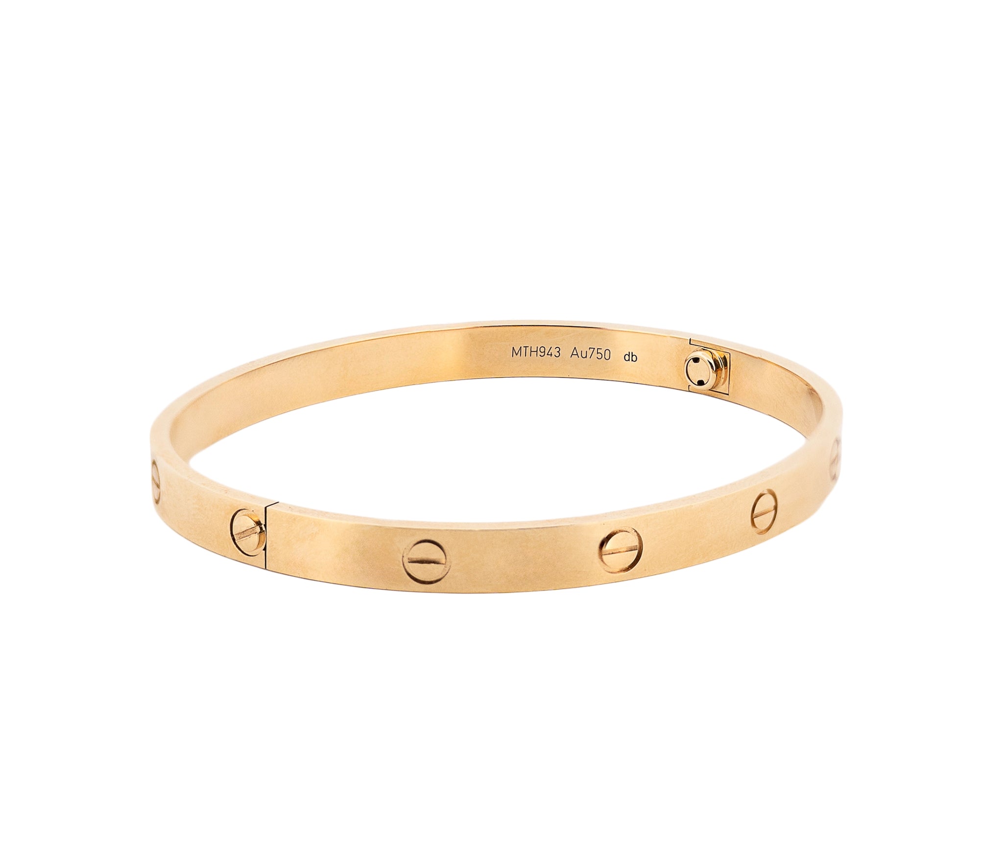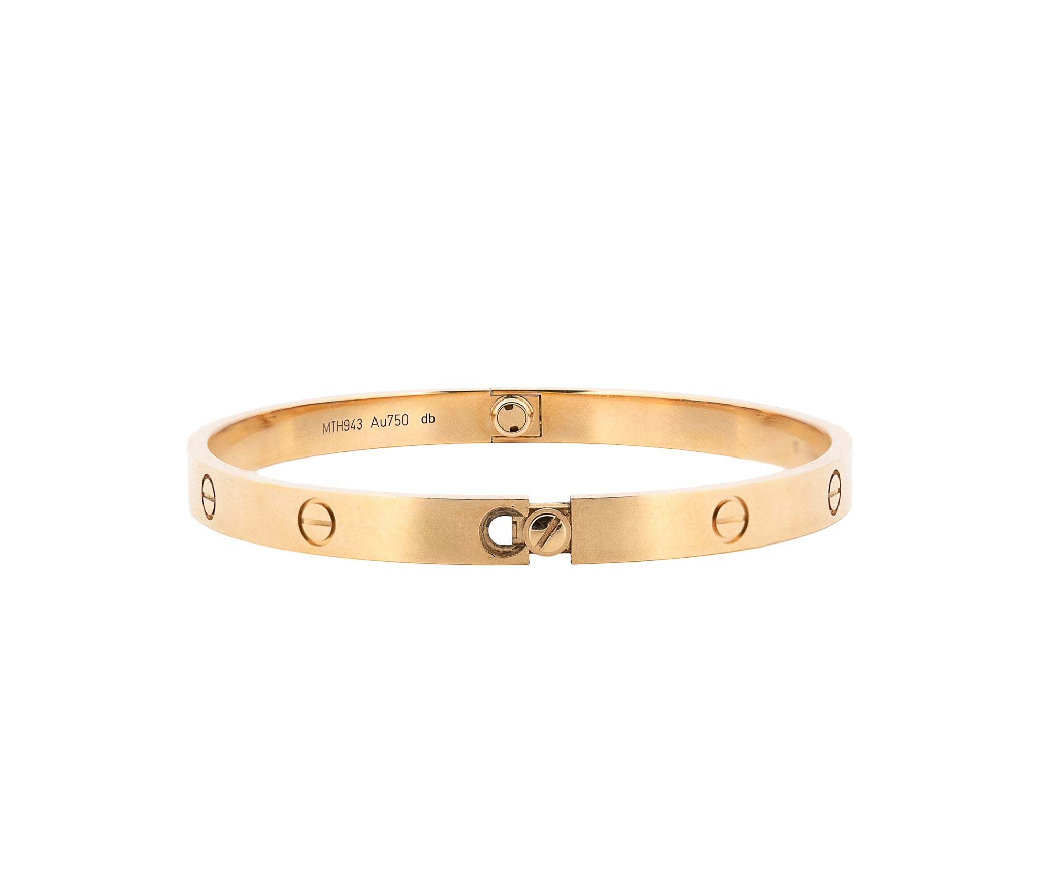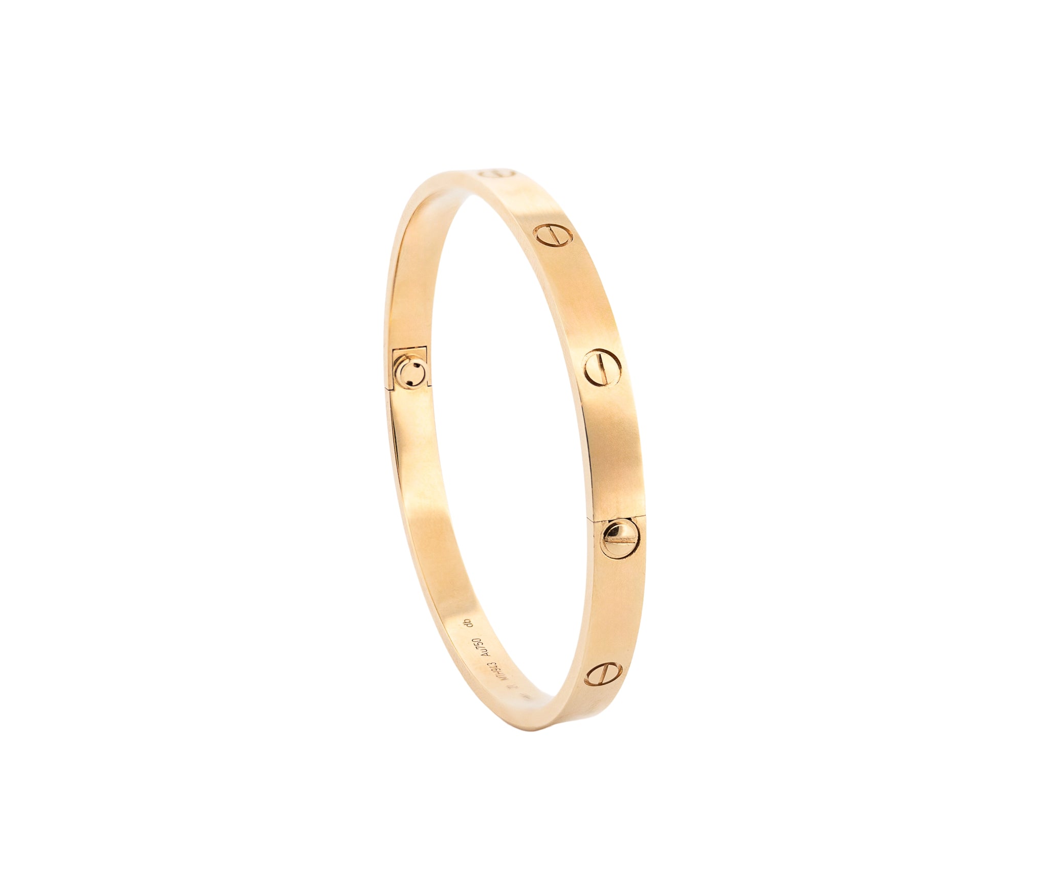 Lock in your style—and maybe someone’s heart. The iconic Cartier Love Bracelet in 18K yellow gold is the ultimate symbol of commitment and classic luxury. Screw it on and say goodbye to basic.