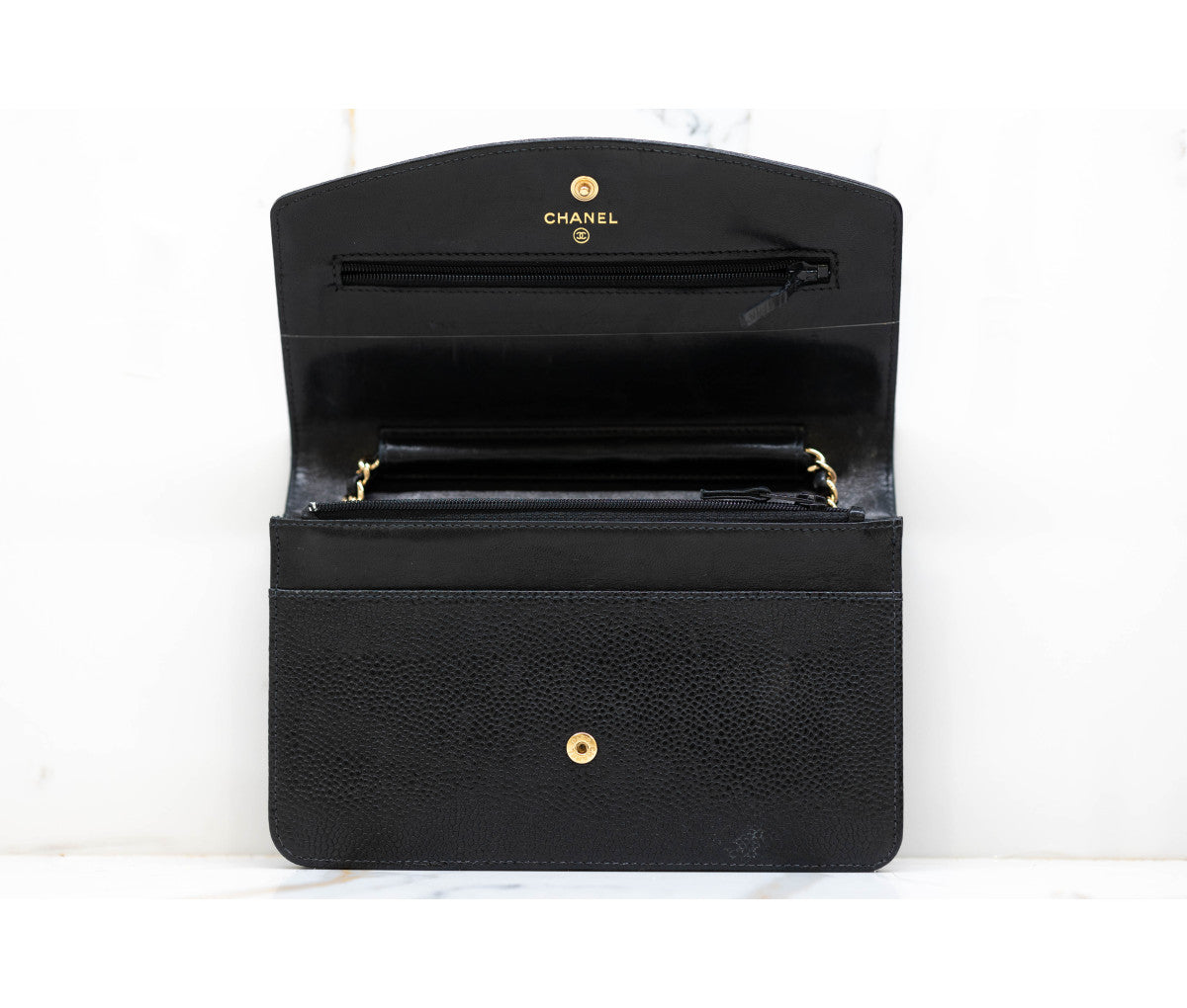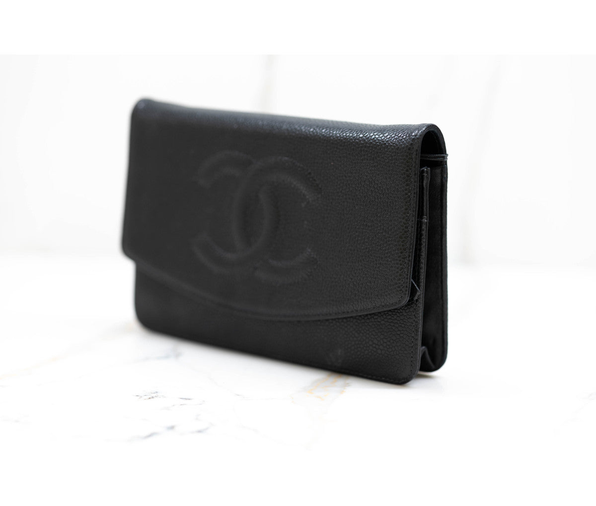 Chanel Black Caviar Leather Timeless Wallet On Chain