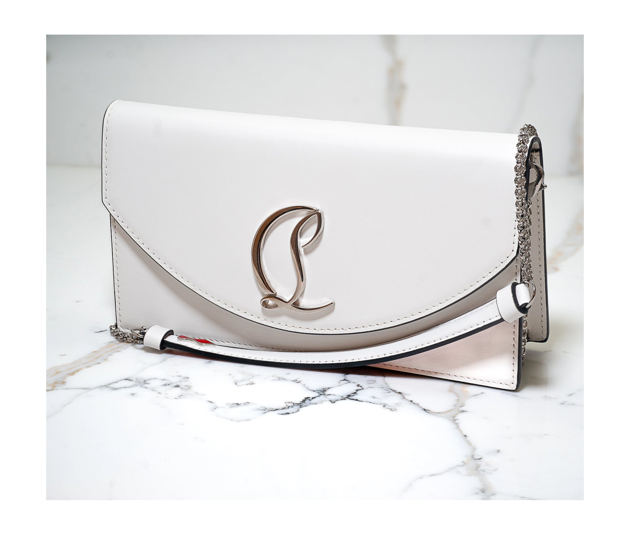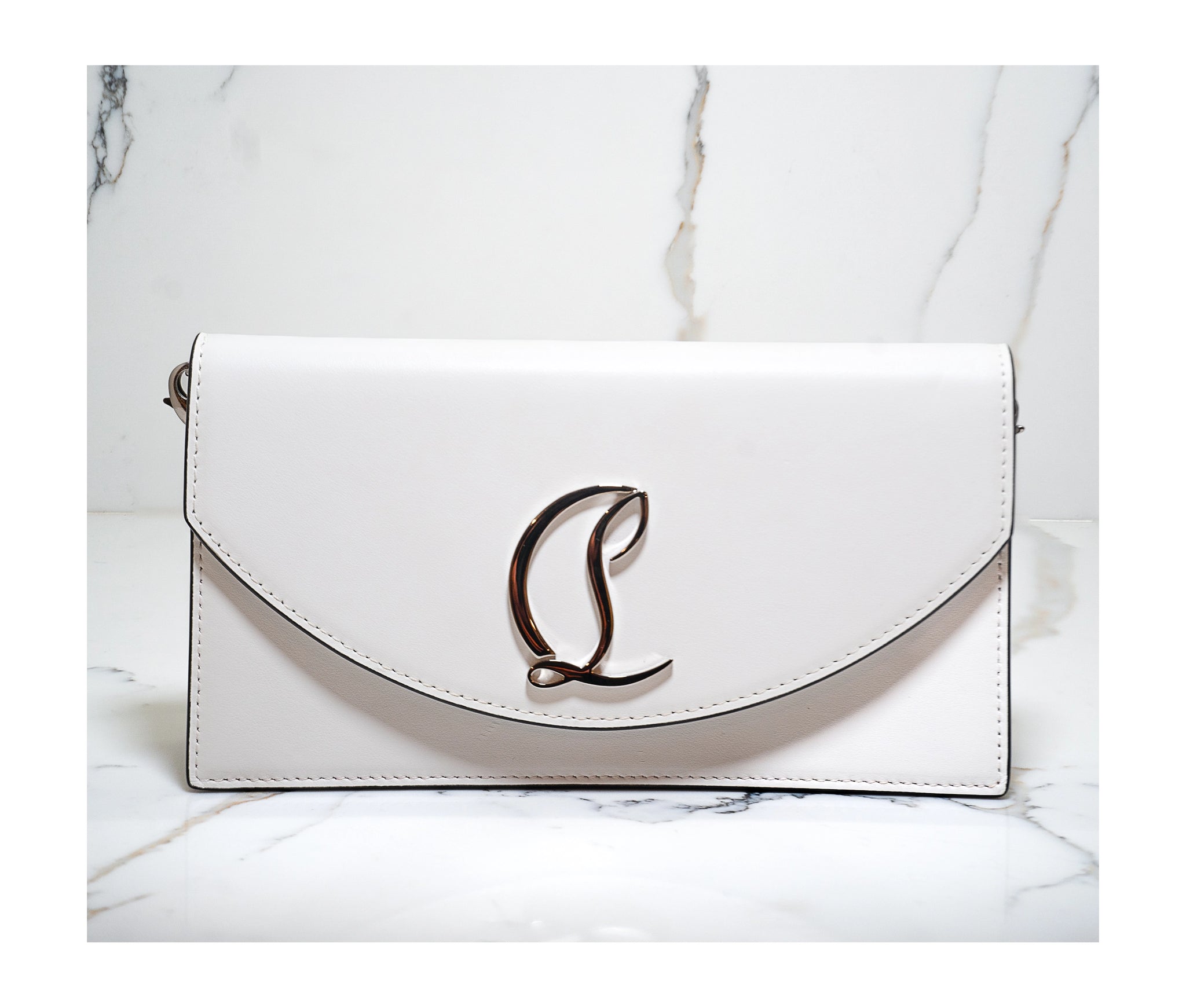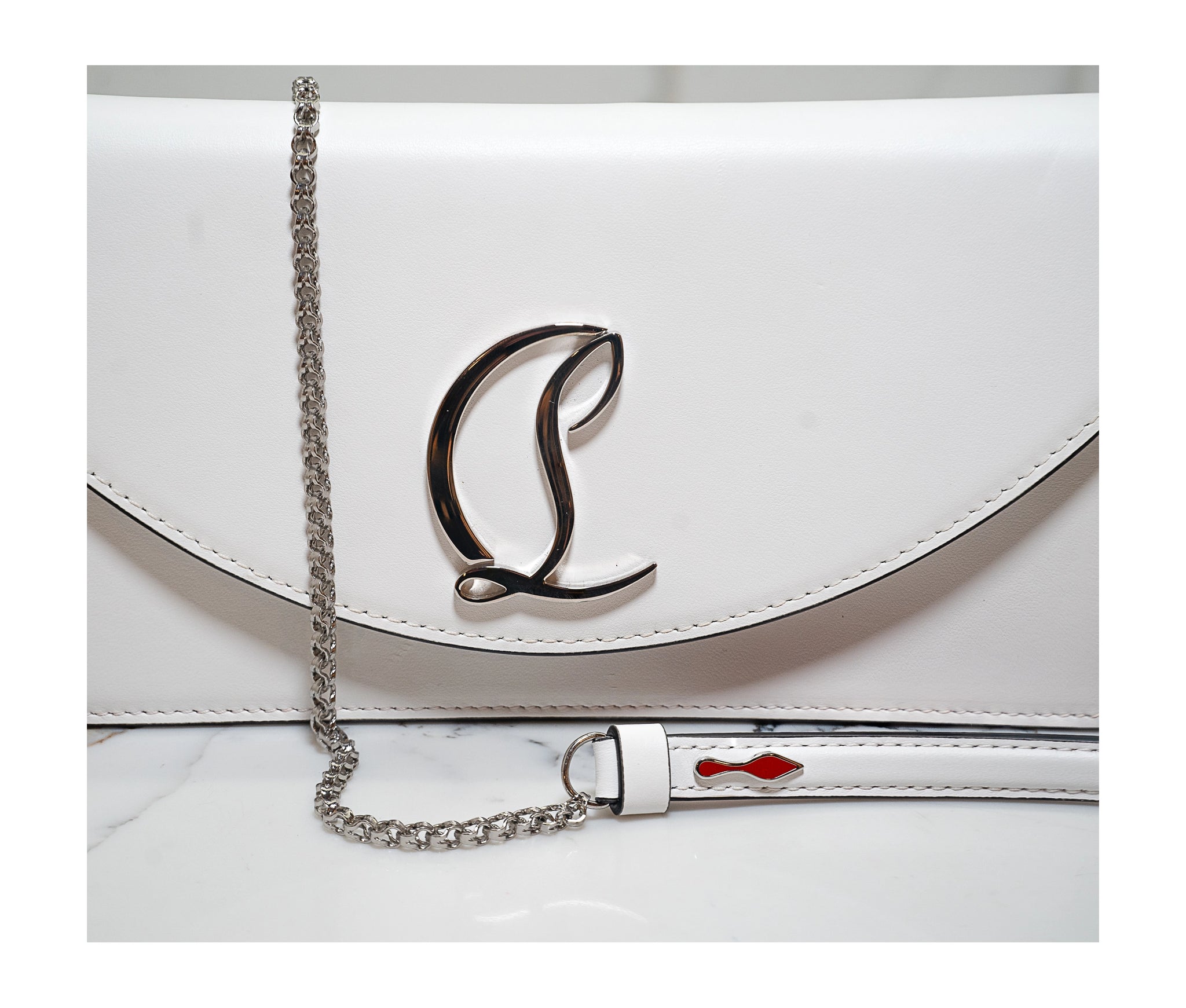 Shop this authentic Christian Louboutin Loubi54 crossbody clutch, a luxury designer bag crafted from premium leather and finished with the iconic CL logo hardware. This versatile clutch features a removable chain strap for crossbody wear and Christian Louboutin’s signature red interior lining, making it a statement piece for evening wear or everyday luxury styling.