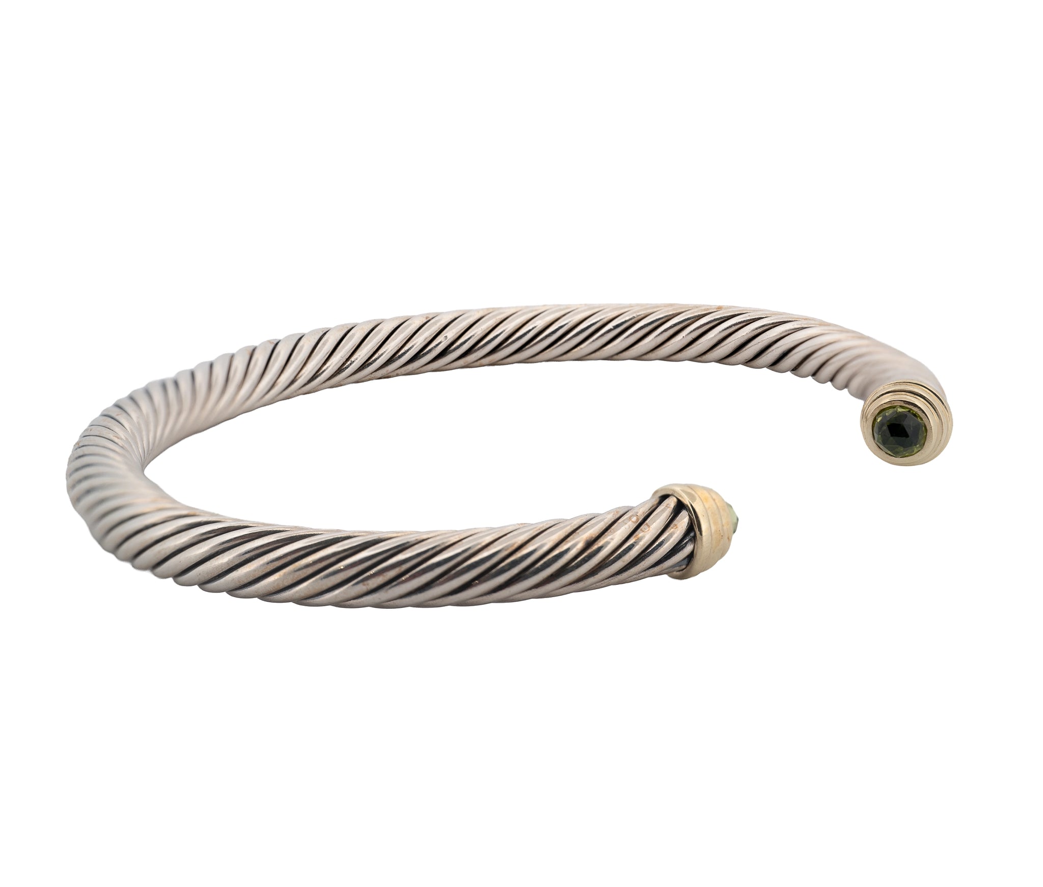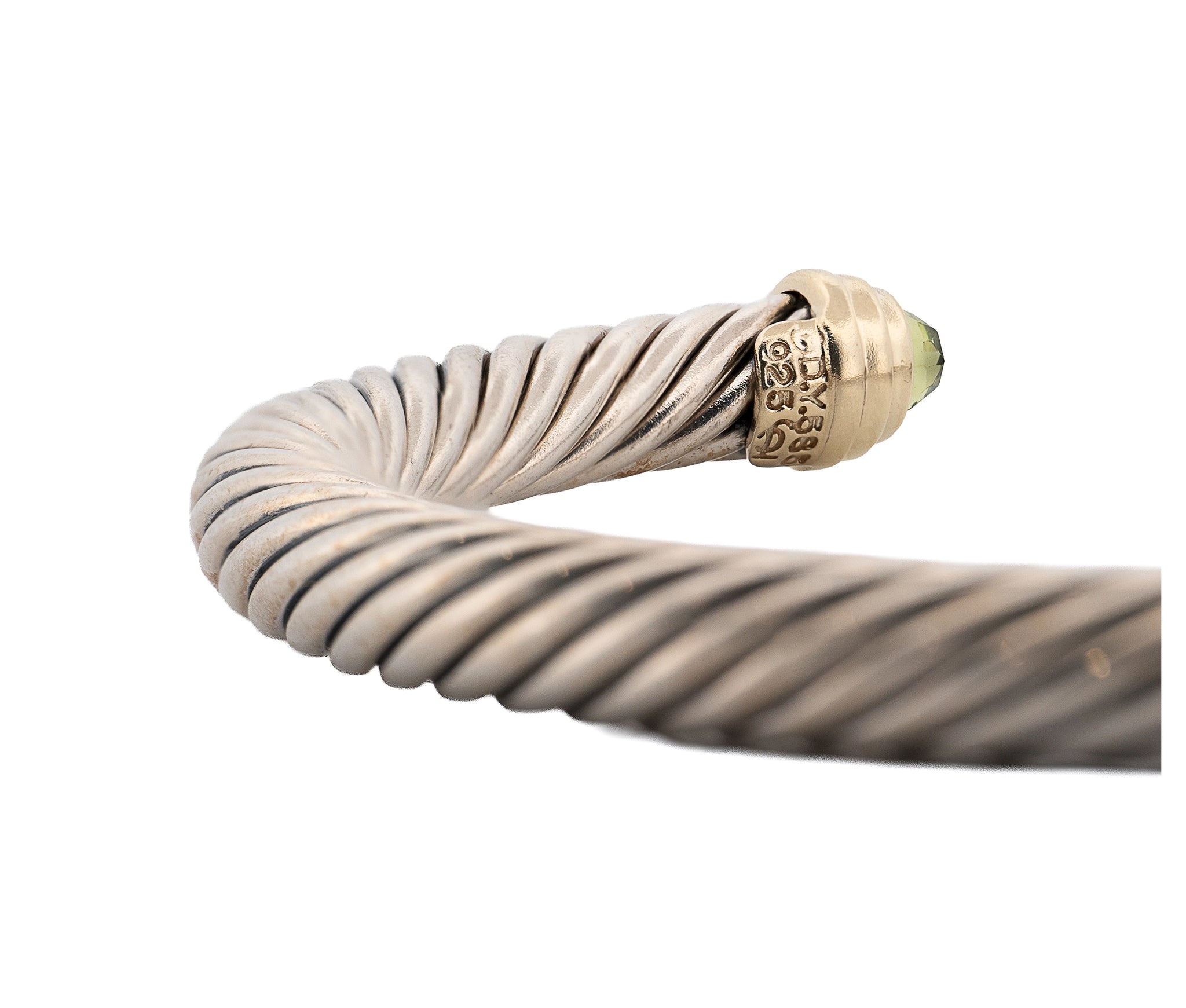 David Yurman 14K Gold, Sterling, & Peridot Cable Bracelet