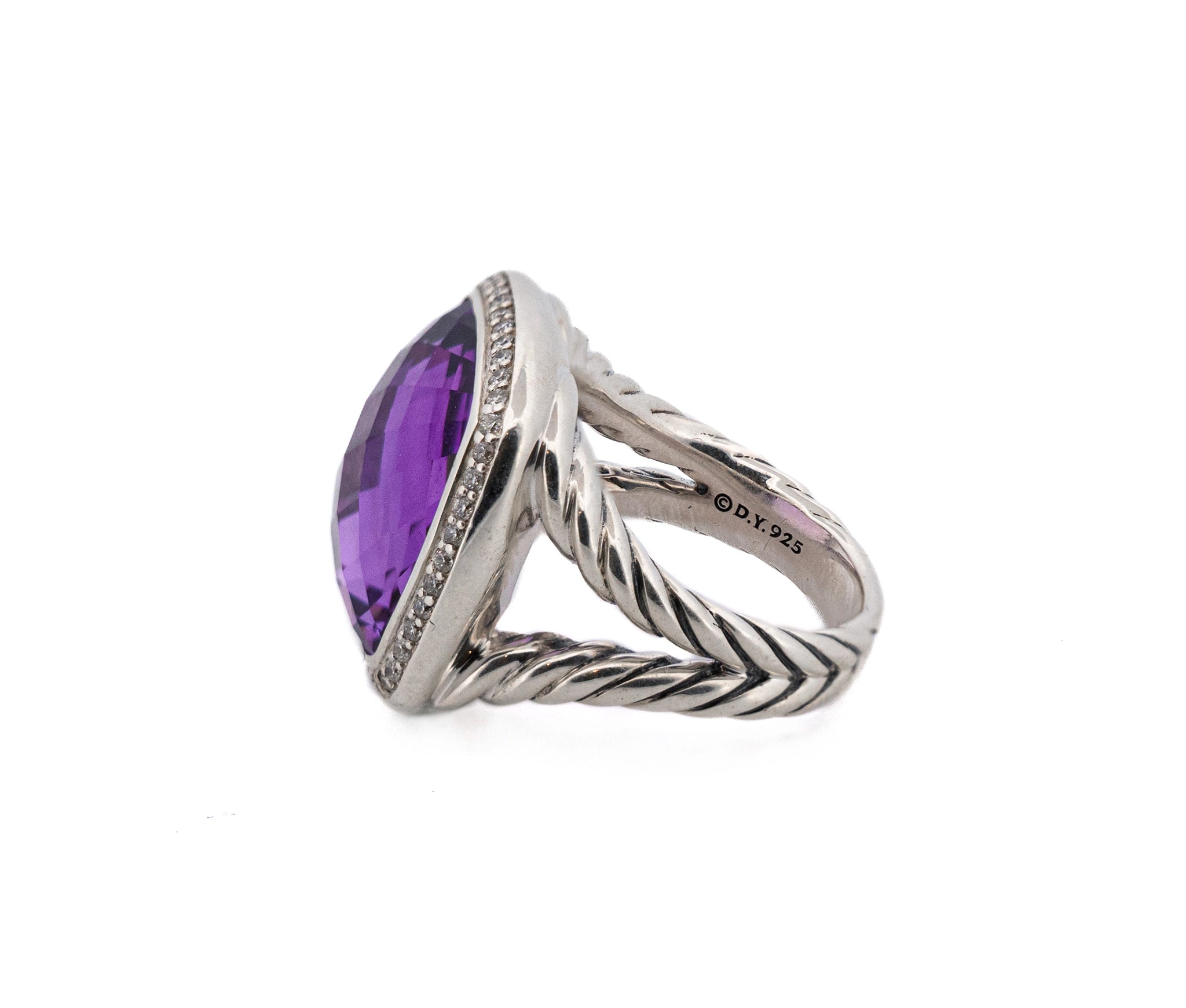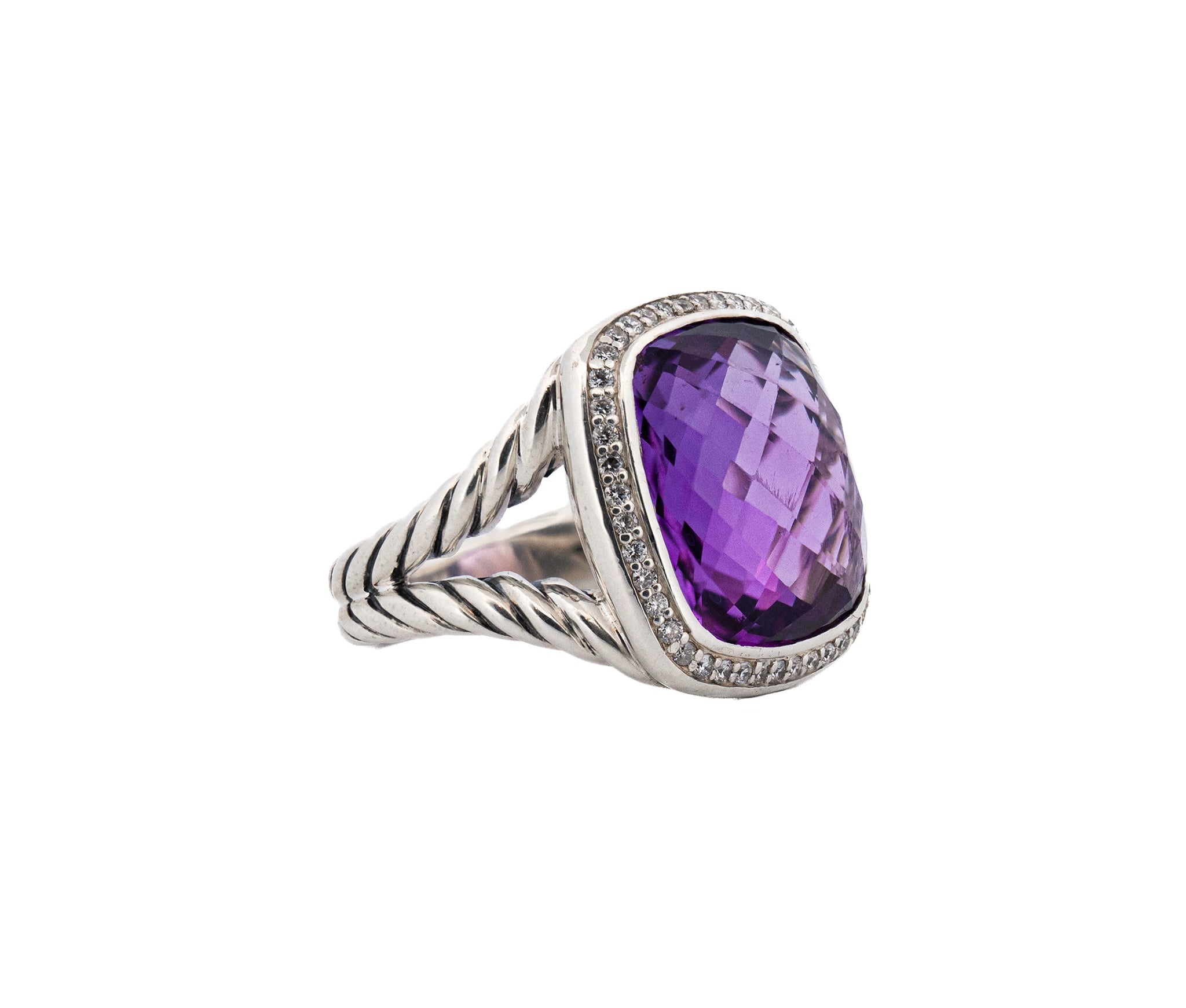 David Yurman Albion Amethyst and Diamond Ring 15mm