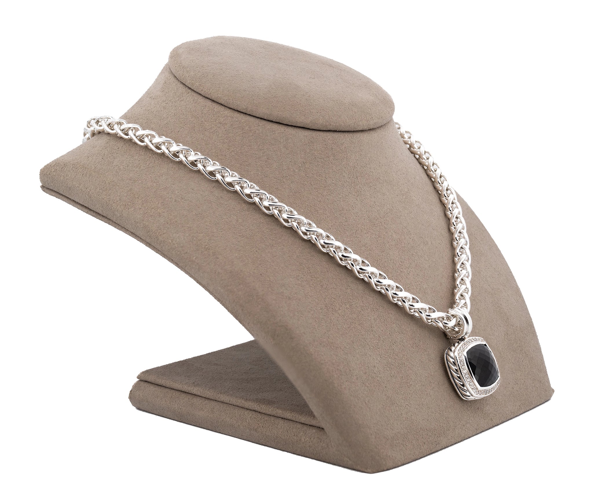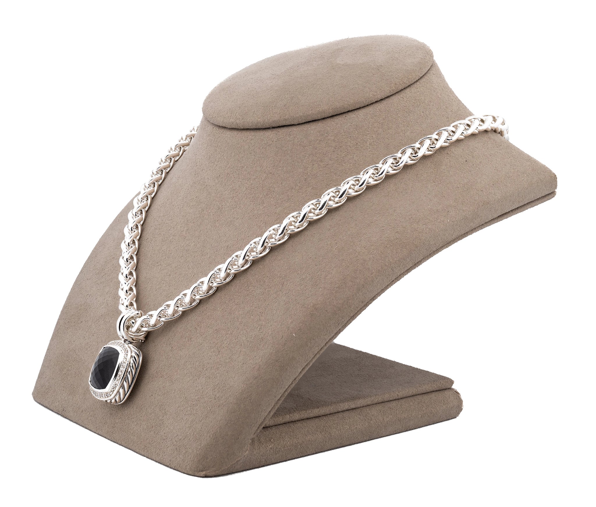 David Yurman Albion Onyx and Diamond Pendant on a 5.8 mm Sterling Wheat Chain