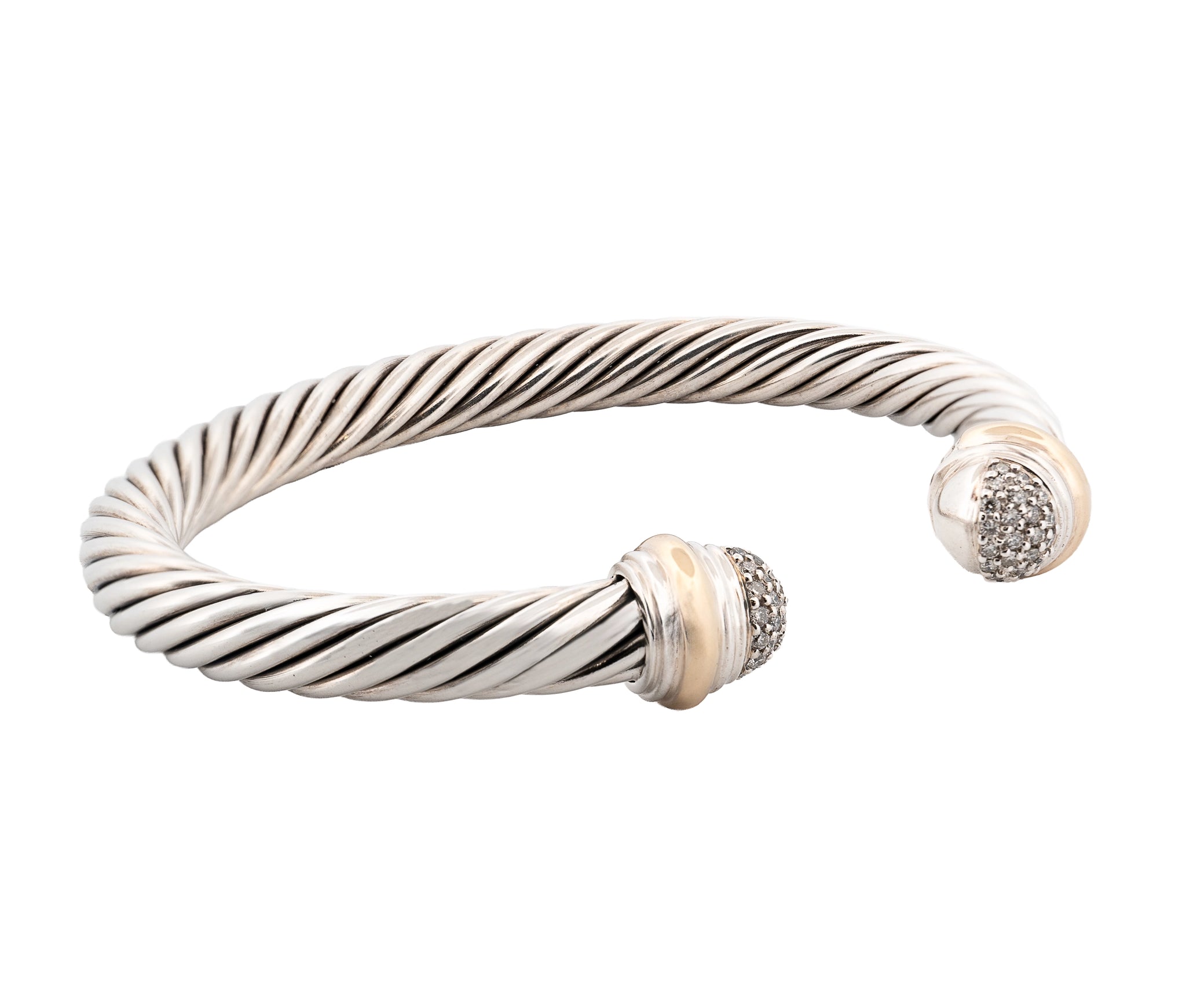 David Yurman Classic Cable Bracelet in Sterling & 18K Gold with 0.49Ct Diamonds