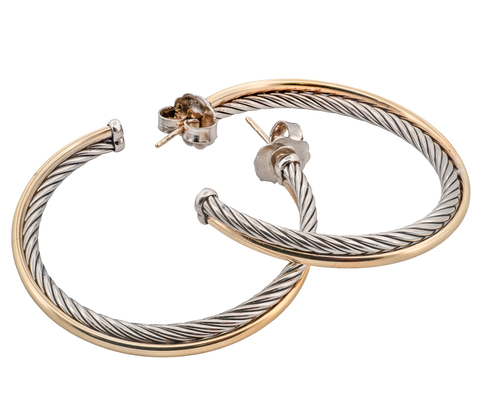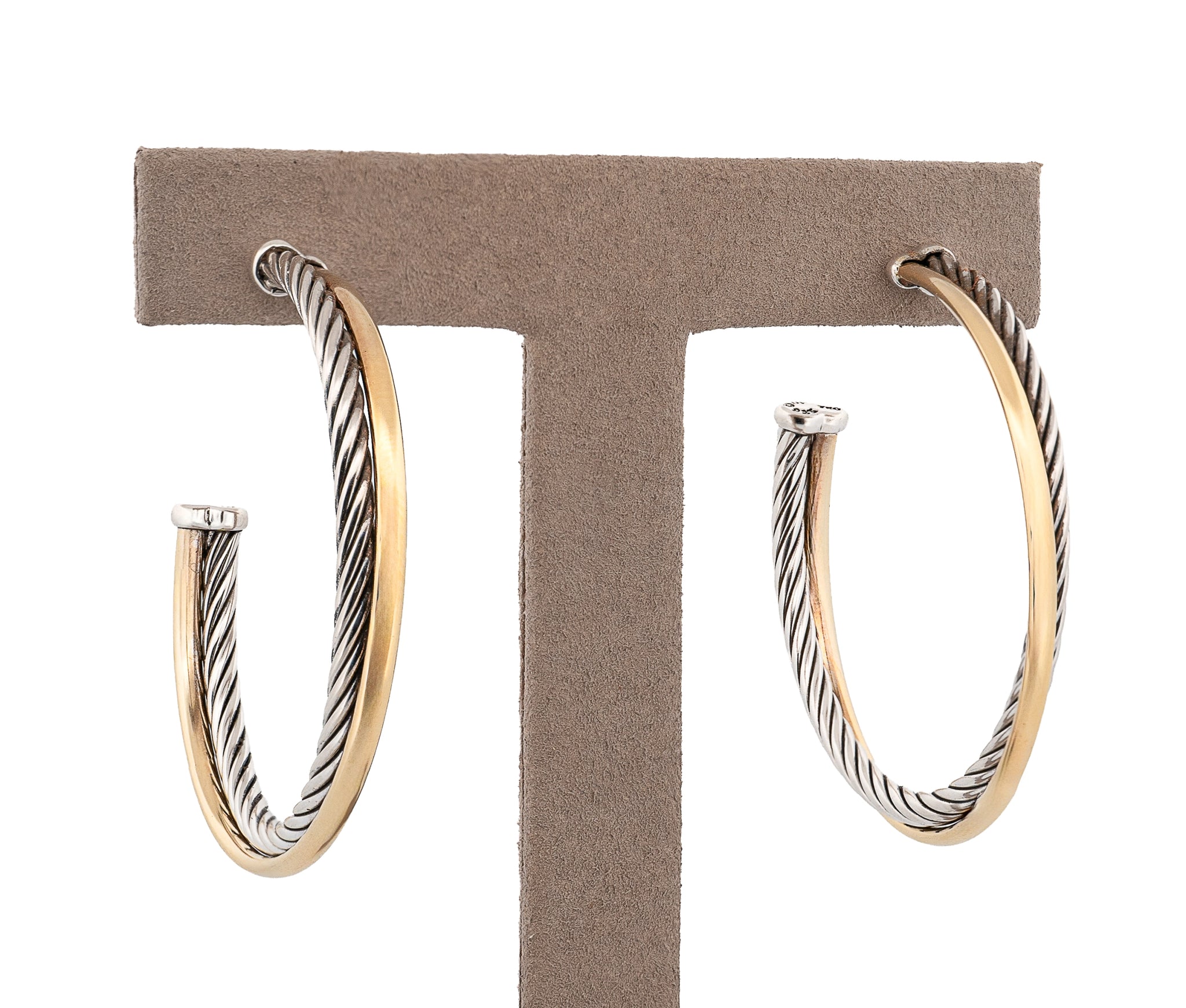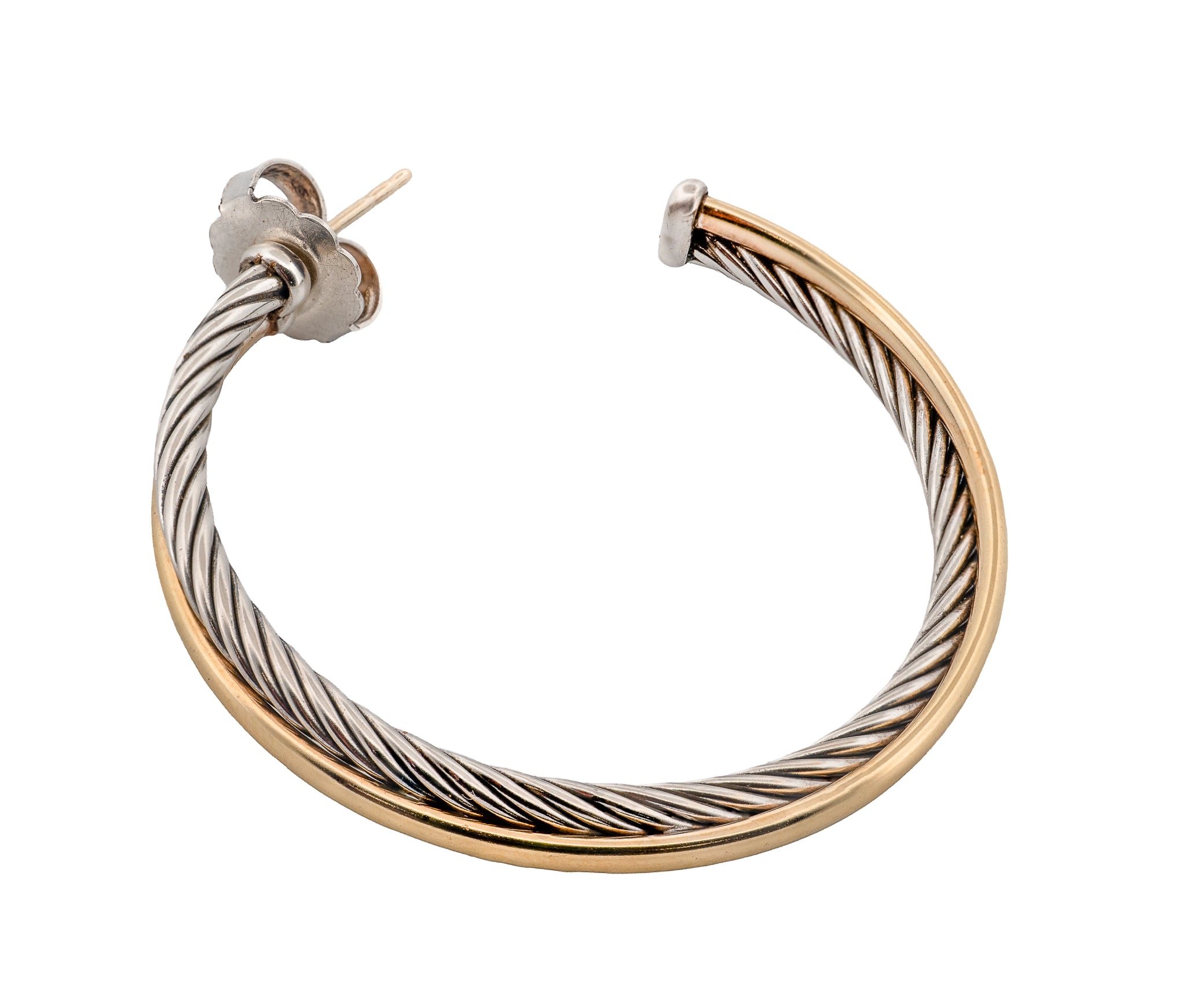 David Yurman Sterling Silver & 18K Yellow Gold Hoop Earrings