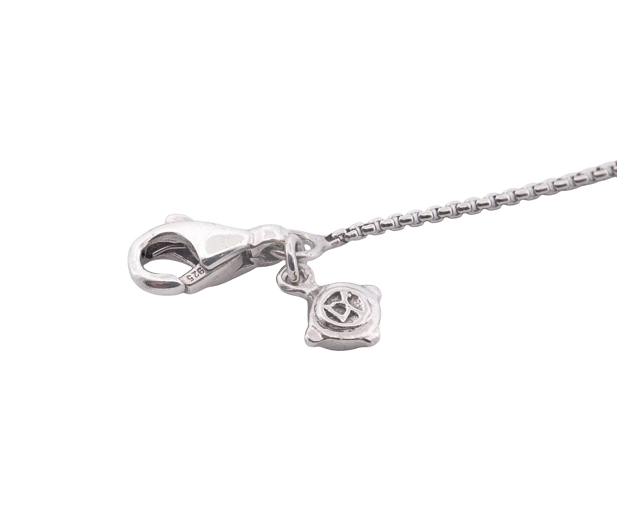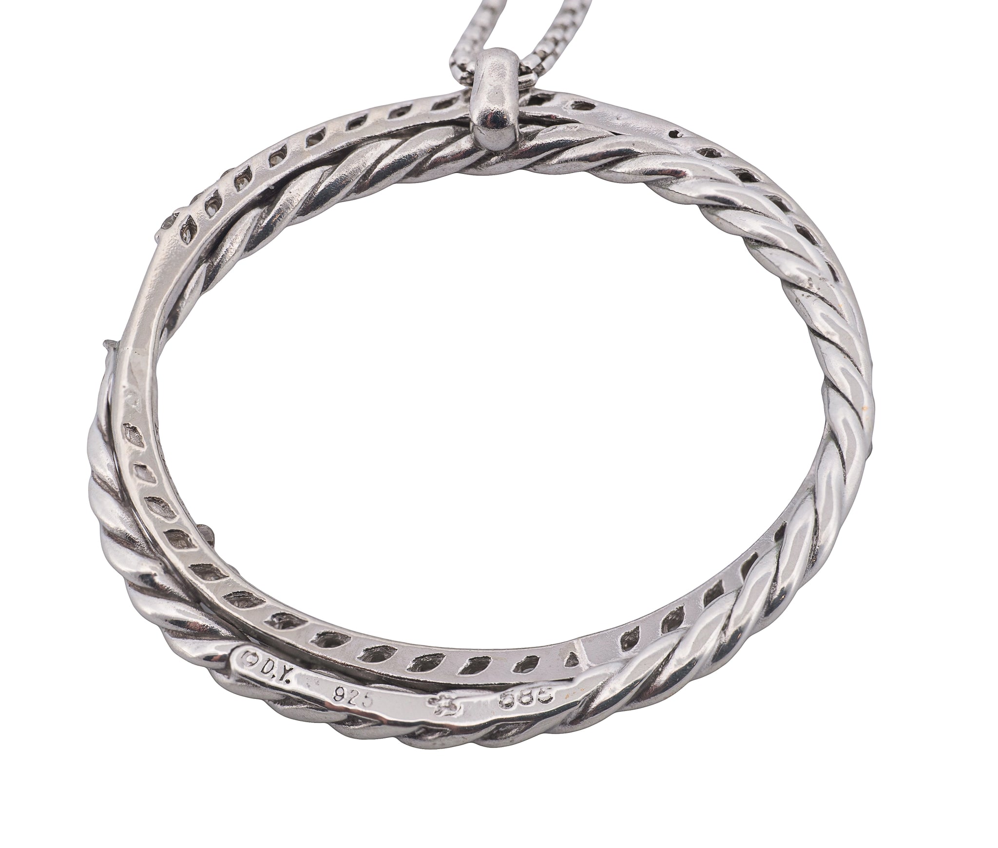 Timeless and sophisticated, this David Yurman necklace is crafted from sterling silver and adorned with sparkling diamonds. The sleek design allows the diamonds to take center stage, offering a refined, elegant touch that complements any outfit. Whether worn for a special occasion or as a daily luxury, this necklace is a perfect balance of classic beauty and modern style.