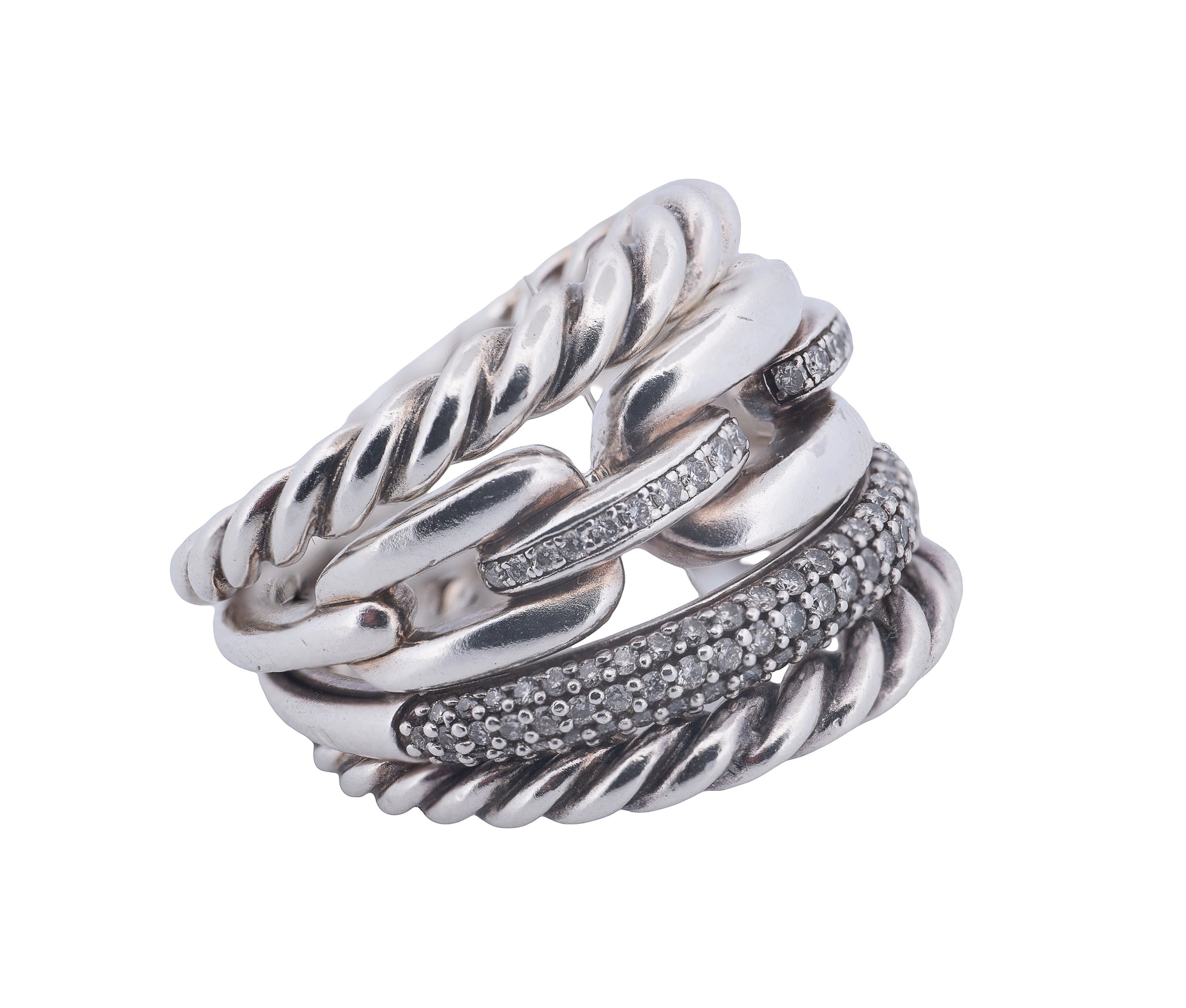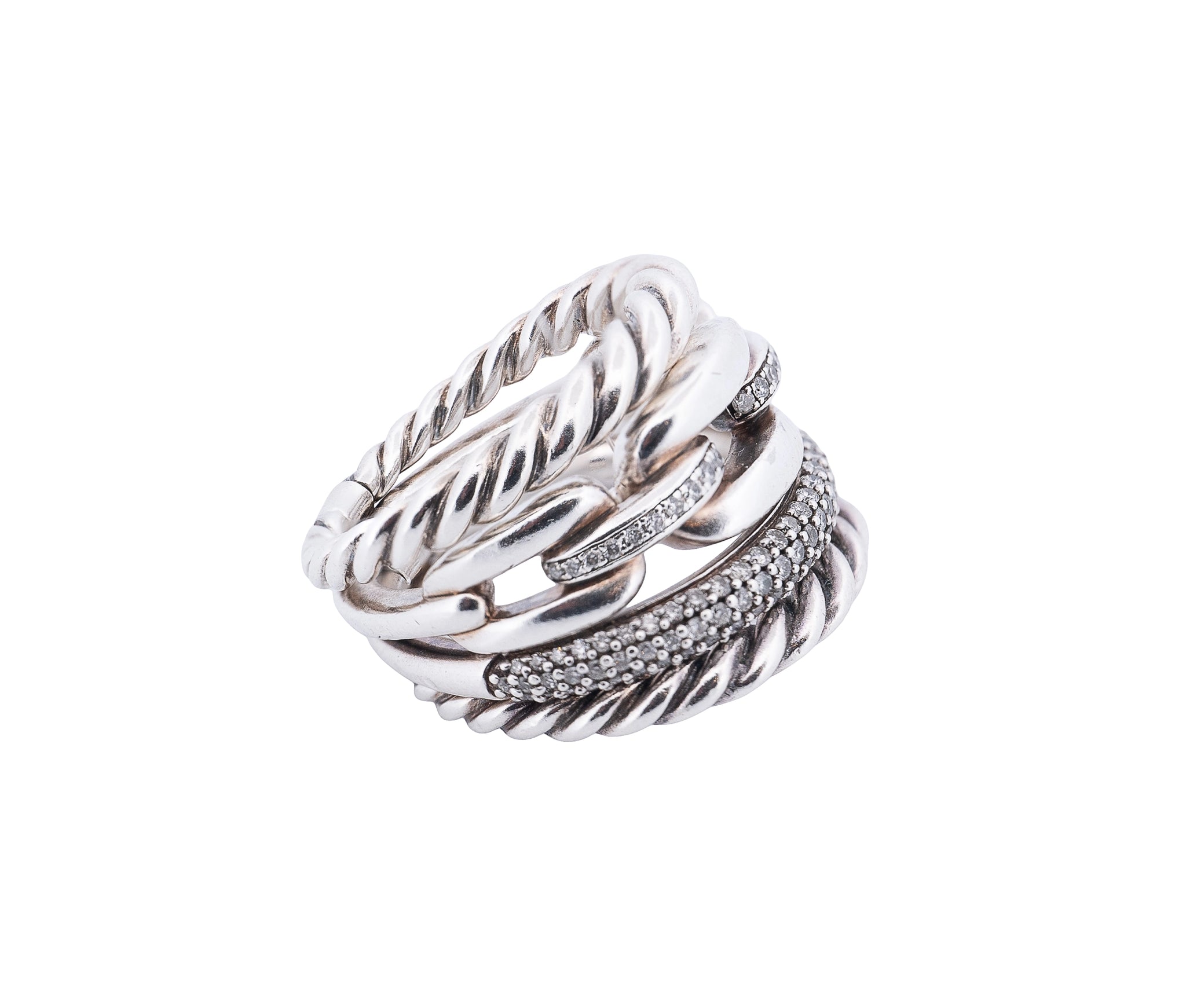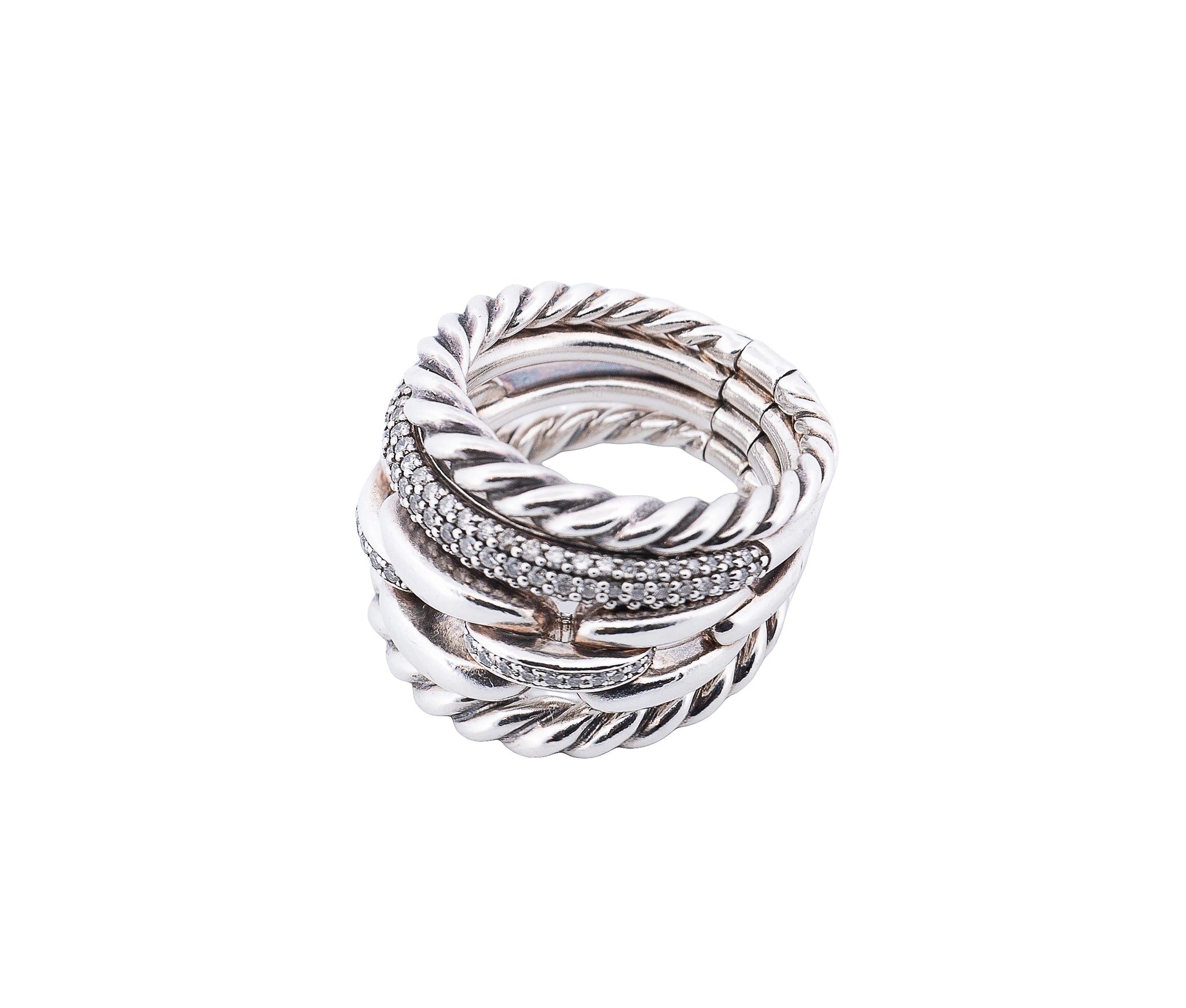 David Yurman Wellesley 4 Row Diamond Ring In Sterling Silver