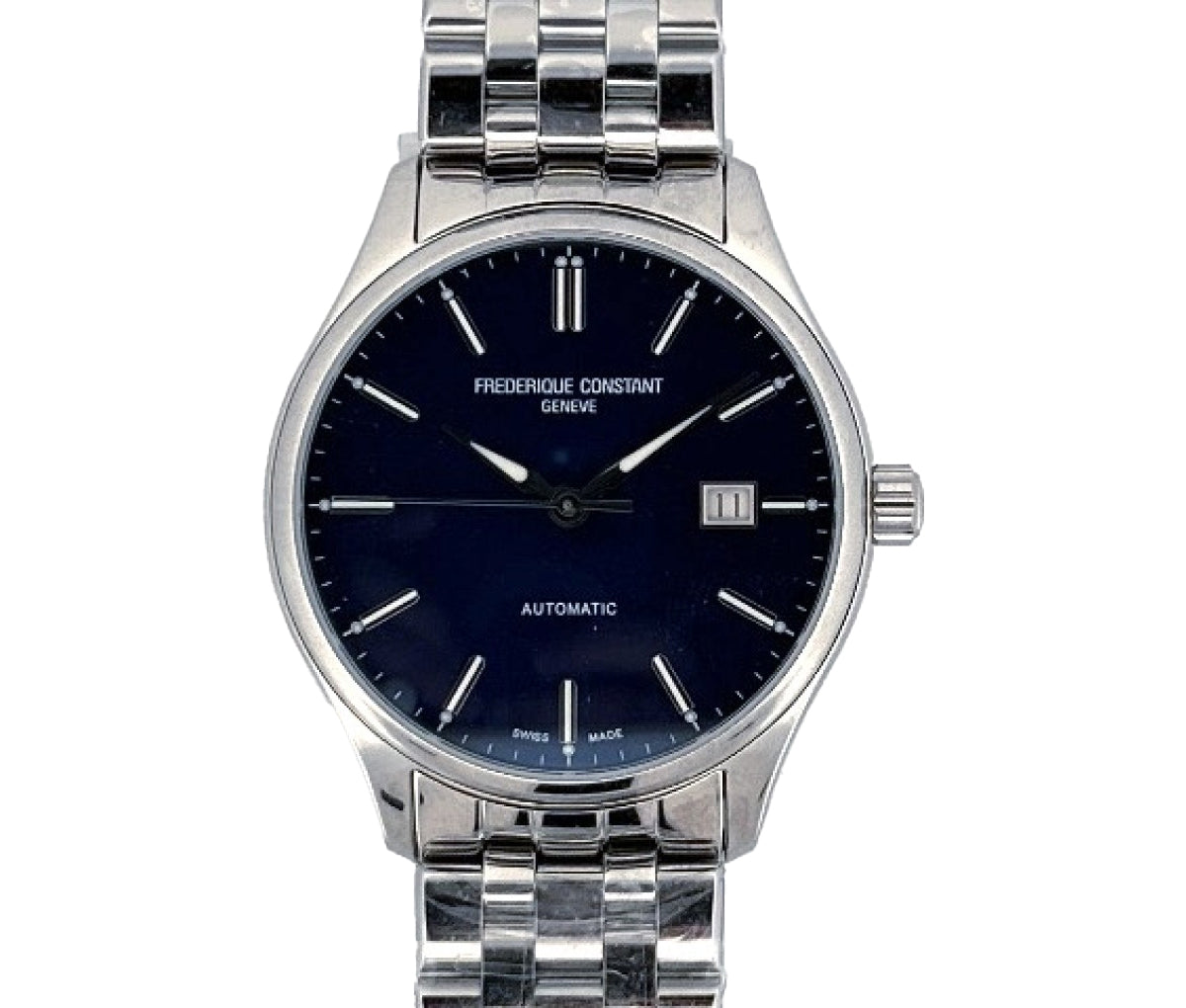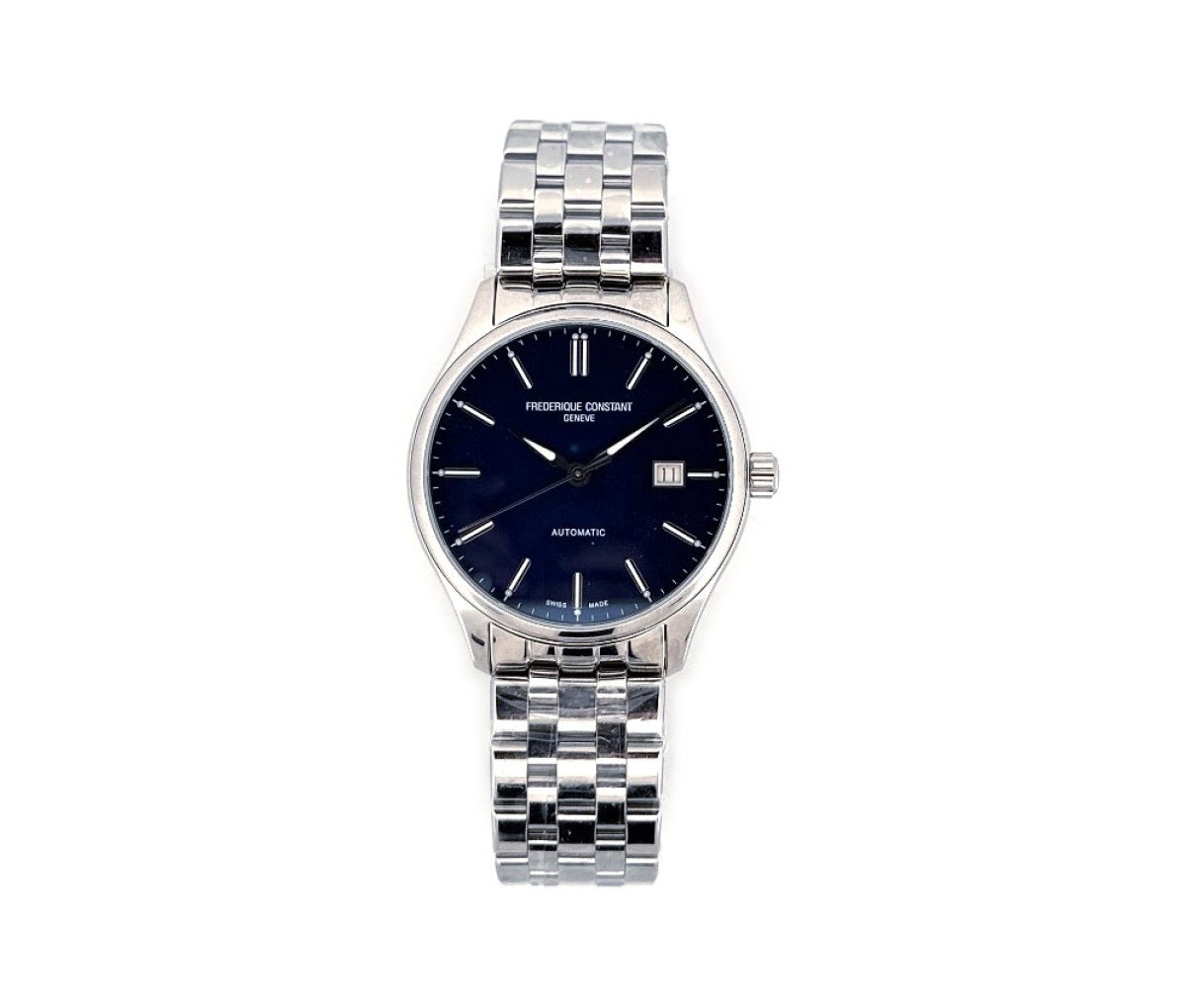 The Frederique Constant Classic epitomizes refined sophistication and timeless craftsmanship. The meticulously polished stainless steel case houses a mesmerizing deep blue dial, its depth and texture offering a quiet luxury. Elegantly polished luminescent hour markers and delicately tapered hands evoke a sense of classical precision, while the discreet date aperture at 3 o’clock enhances functionality without detracting from the dial’s balanced aesthetic. Whether paired with a supple leather strap or an intricately crafted steel bracelet, this timepiece exudes effortless refinement. Driven by Swiss engineering, it is not merely a watch but a hallmark of enduring elegance and impeccable taste.